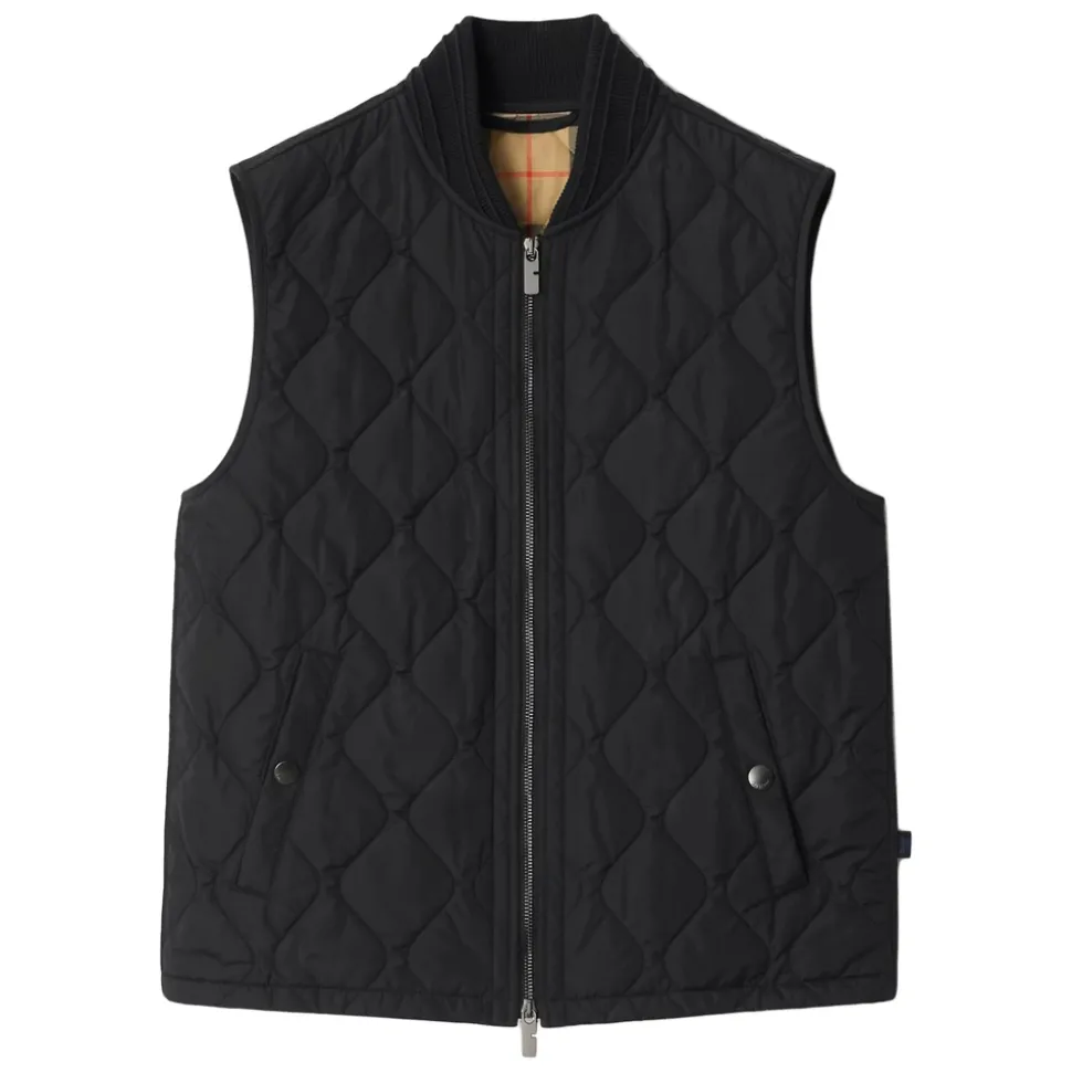Burberry jakke med en tovejslynlås og signatur Burberry Check-foring, skabt til alsidig hverdagsbrug. Designet fremhæver funktionelle lommer og en brandet rytterfane for en raffineret finish. Nøgleattributter: Sort | Polyamid | Tovejs lynlåslukning | Sidelommer med trykknap | Burberry Check-foring | Equestrian Knight designfane i siden | Dimensioner og pasform: Modellen er iført størrelse M | Sammensætning og pleje: 100% polyamid