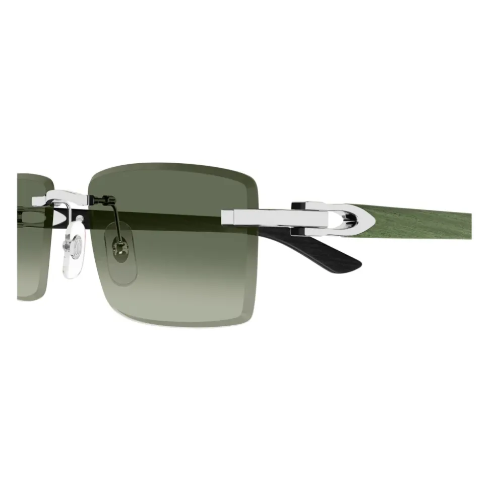Cartier C Décor Solbriller kombinerer en raffineret, rammeløs rektangulær silhuet med Maison’s signatur Décor C tempeldetalje. Designet til hverdagsbrug, de tilføjer en poleret finish til afslappede og skræddersyede looks. Nøgleattributter: Sølv | Grøn | Metal | 100% UV-beskyttelse | Ikke-polariserede linser | Inkluderer originalt etui og rengøringsklud | Linser kan tilpasses med receptpligtige (graduerede) linser | Rammeløs rektangulær silhuet | Facetslebne linser | Décor C motiv på stænger | Cartier logo plaque på stangender | Dimensioner & pasform: Linsebredde: 56 mm | Linsehøjde: 34 mm | Bro: 19 mm | Stanglængde: 145 mm | Sammensætning & pleje: Metal | Bio nylon (linser) | Træ (stangdetaljer) | Aftør linserne med en mikrofiberklud og opbevar dem i det originale etui.