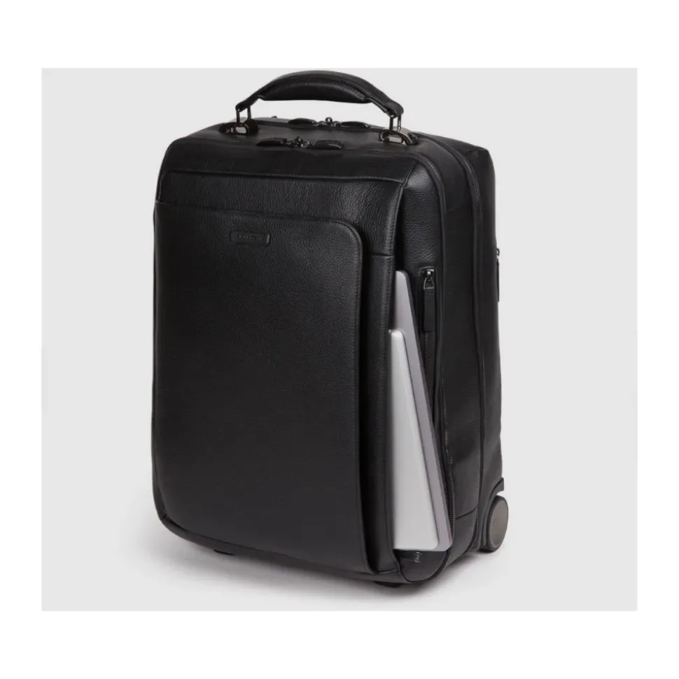 Læderkabinekuffert med tøjærme, stødabsorberende polstret rum til bærbar computer og iPad® og TSA-lås