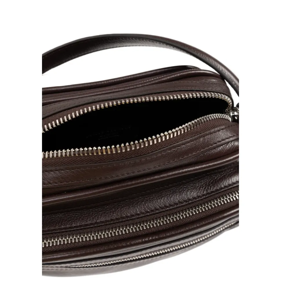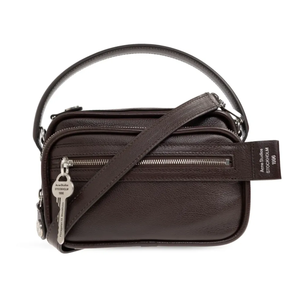 Acne Studios Camero Kit Crossbody Taske kombinerer en kompakt, rektangulær silhuet med flere lynlåsrum til organiseret hverdagsbrug. Dens narvede kalveskind og sølvfarvede hardware giver et raffineret og alsidigt look til brug fra dag til nat. Vigtige egenskaber: Chokoladebrun | Kalveskind | Håndtag | Justerbar skulderrem | Flere lynlåsrum | Hovedlynlåslukning | Rektangulær, kompakt form | Småkornet, skinnende lædertekstur | Minimalistisk silhuet | Nøgleformet vedhæng med diskret gravering | Sølvfarvet metalhardware og lynlåsdetaljer | Mål og pasform: Højde: 13 cm | Bredde: 20 cm | Dybde: 11 cm | One size | Sammensætning og pleje: Ydermateriale: 100% kalveskind | Foring: 50% polyester, 50% polyurethan