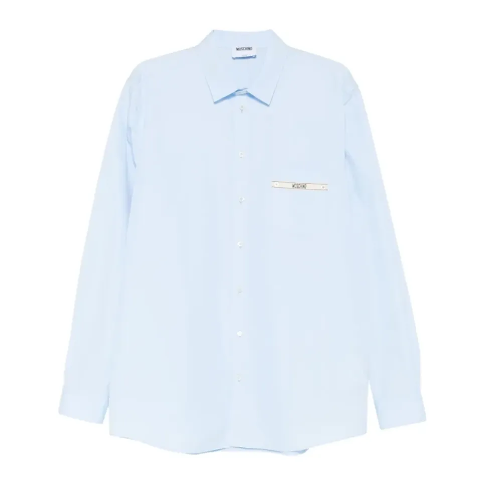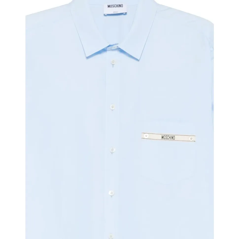 Moschino Camicia con logo er en afslappet skjorte, der fremhæver en logodetaljeret brystlomme og en knaplukning foran. Den er designet til hverdagsbrug og nem styling. Nøgleattributter: Blå | Azzurro | Bomuld | Knaplukning foran | Brystlomme | Logodetalje | Sammensætning og pleje: 100% bomuld | Følg producentens plejeinstruktioner.