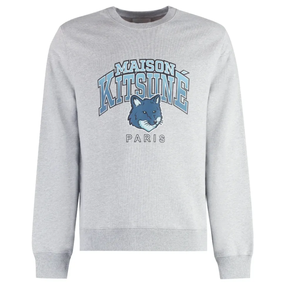 Maison Kitsuné Campus Fox Printed Sweatshirt er en bomuldssweatshirt, der fremhæver et trykt motiv og ribkanter for et rent, hverdagslook. Vigtige egenskaber: Grå | Bomuld | Trykt design | Ribkanter | Sammensætning og pleje: 100% bomuld | Maskinvask kold. Tørretumbles ved lav varme. Køligt strygejern om nødvendigt.
