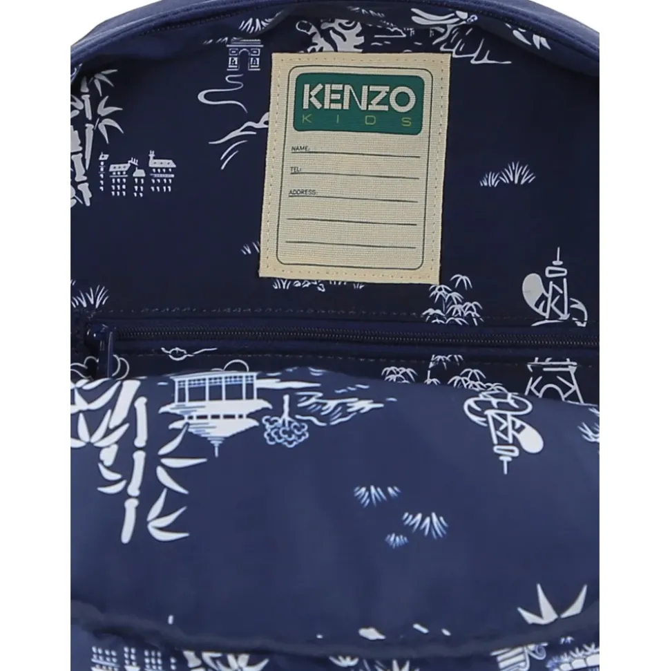 Kenzo Canvas Rygsæk kombinerer en markant Eiffeltårns-grafik med et logomærke for en iøjnefaldende hverdagstaske. Den tilbyder organiseret opbevaring og flere bæremuligheder til daglig brug. Nøgleattributter: Mørkeblå | Canvas | Lynlåslomme foran | Top håndtag | Justerbare skulderstropper | Åbne sidelommer | Logomærke | Eiffeltårns grafisk print | Logoprint