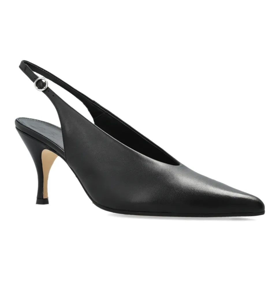 Aeyde Carla Slingback Pumps kombinerer en spids silhuet med glat nappa-læder for et raffineret, aftenklart look. Den justerbare slingback-rem og afbalancerede stilet giver elegante linjer med sikker brug. Nøgleattributter: Sort | Nappa-læder | Justerbar slingback-rem | Spænde | Gummiindsprøjtet hæl for greb | Spids tå | Stilethæl | Åben slingback | Minimalistisk glat finish | Forlænget frontsilhuet | Ingen synlige logoer | Dimensioner & pasform: Hælhøjde: 8,5 cm | Sålhøjde: 0,5 cm | Sammensætning & pleje: Yderside: 100% Nappa-læder | Inderside: 100% krydsningslammeskind | Ydersål: 90% okselæder, 10% gummi