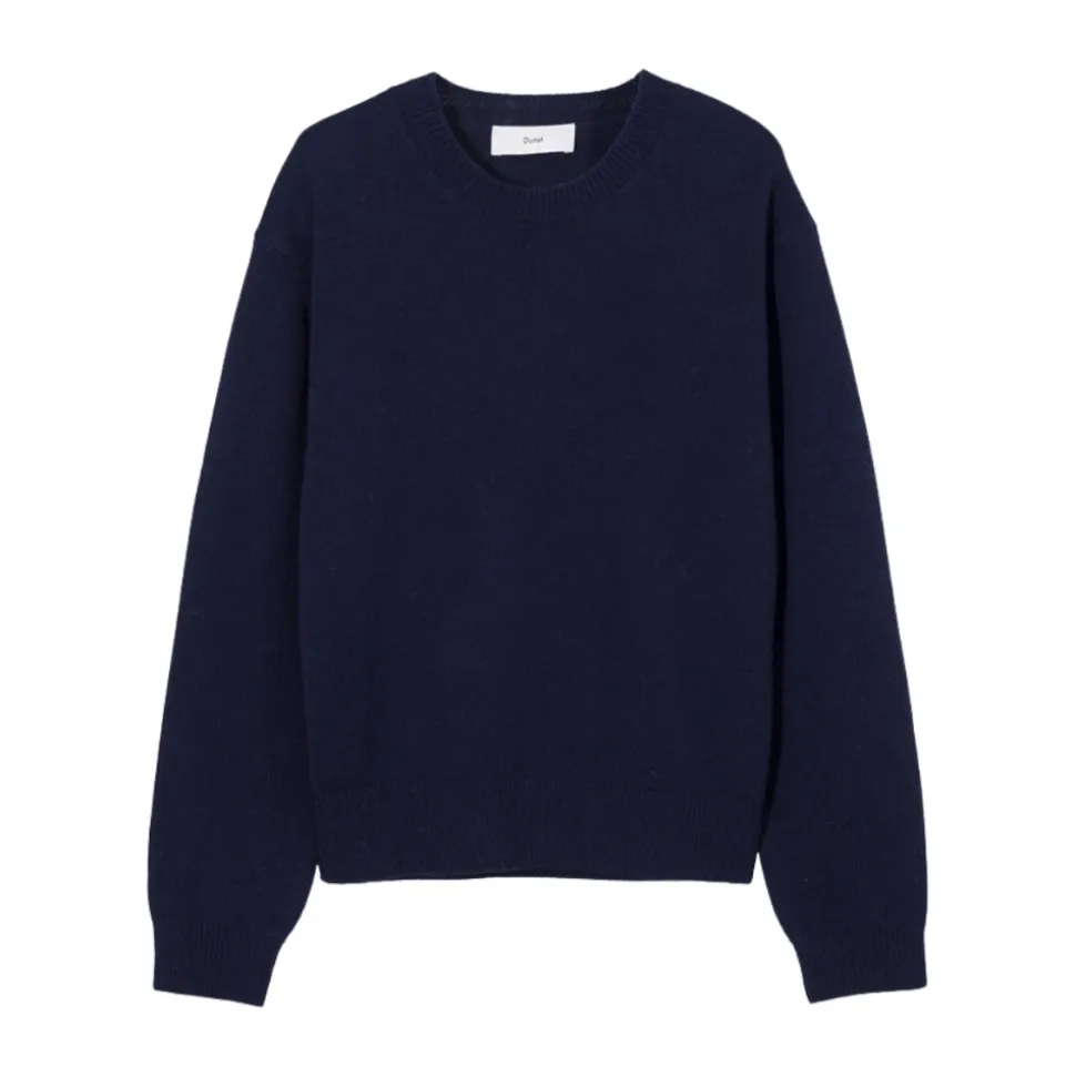 Dunst Cashmere Crewneck Sweater kombinerer en strikket blanding af uld og cashmere for bløde, isolerende lag. Den er velegnet til hverdagsbrug og nem lagdeling under jakker eller over skjorter. Vigtigste egenskaber: Blå | Dyb marineblå | Uld | Rund hals | Strikket konstruktion | Sammensætning & pleje: Uld 90% | Cashmere 10%