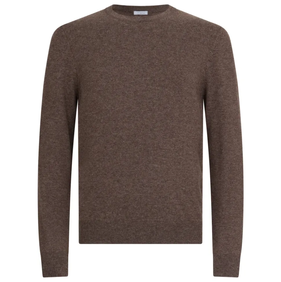 Malo cashmere sweater med rund hals kombinerer ren cashmere-blødhed med en ren, alsidig rund hals silhuet. Den er designet som en raffineret, hverdagsstrik, der fungerer lige så godt med jeans eller afslappede bukser. Nøgleattributter: Brun | Cashmere | Rund hals (crew neck) | Lange ærmer | Melange strik | Enkel, ren silhuet | Dimensioner og pasform: Klassisk pasform | Fås i flere størrelser | Sammensætning og pleje: 100% Cashmere | Håndvask koldt eller rens. Må ikke vrides. Vask separat. Må ikke bleges. Stryg ved lav temperatur. Tør fladt.