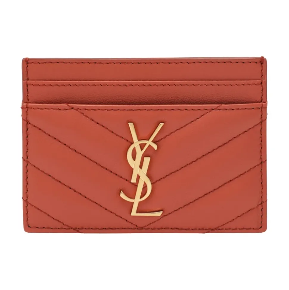 Saint Laurent Cassandre Card Case er en kompakt kortholder i lammeskind, designet til hverdagsorganisering. Den har det karakteristiske Cassandre-logo og chevron-quiltede stikninger for en raffineret, slank profil. Vigtige egenskaber: Orange | Mørk Mandarin | Lammeskindslæder | Slank profil | Fem kortpladser | Centralt rum | Cassandre-logo | Chevron-quiltede stikninger | Guldfarvet hardware | Mål og pasform: B: 10,5 cm, H: 7,5 cm, D: 0,5 cm | Kompakt silhuet | Sammensætning og pleje: 100% lammeskindslæder | Rengør med en blød klud.