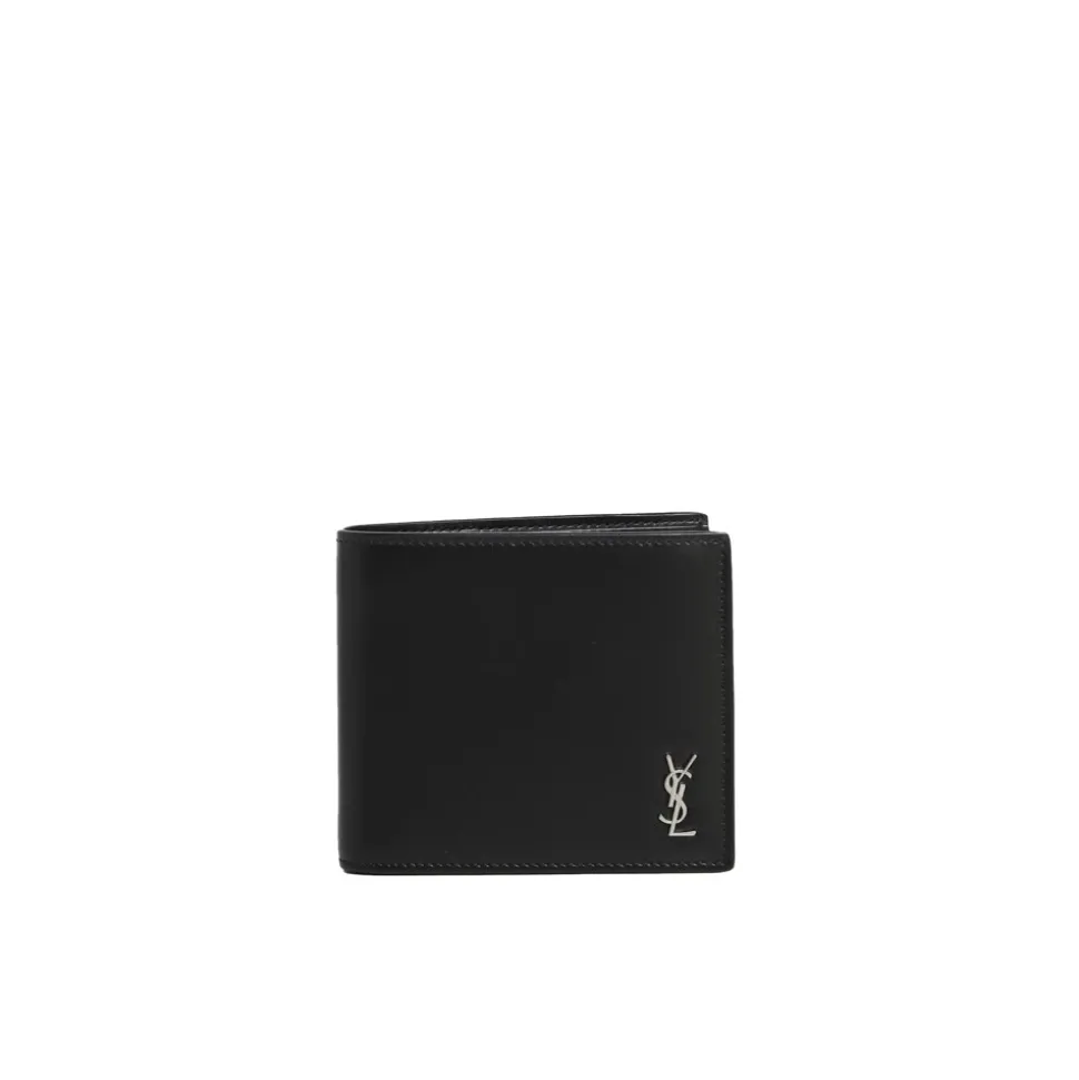 Forhøje dit tilbehørsspil med den elegante sorte Cassandre East/West Wallet fra Saint Laurent. Denne kompakte pung kombinerer luksus og funktionalitet med en iøjnefaldende sølv YSL-logo. Produkt detaljer: Black | Kalveskind | Otte kortslots | To pengesektioner | To kvitteringsrum | Mat læderfinish | Sølv YSL-logo i metal | Dimensioner og pasform: Regular fit | Sammensætning og pleje: 100% kalveskind