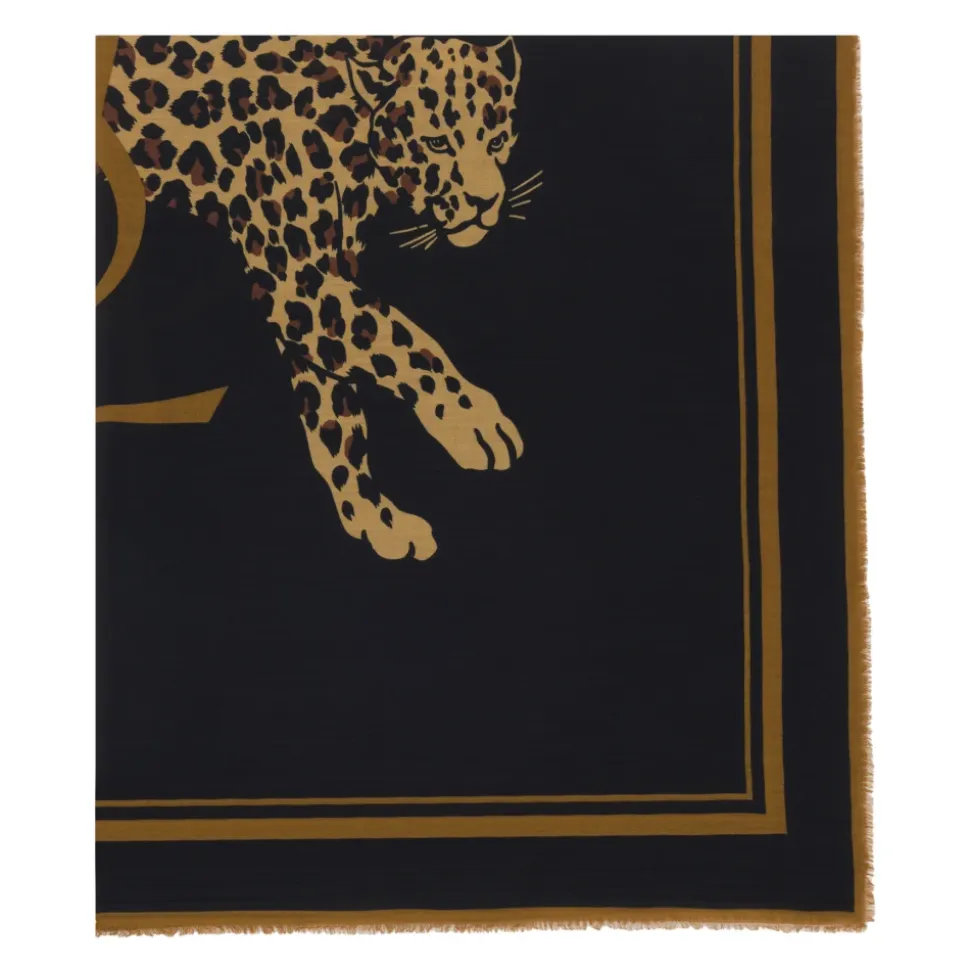 Saint Laurent Cassandre Large Square halstørklæde har et centralt leopard- og Cassandre-motiv med frynsede kanter, fremstillet i uld for et blødt fald og lagdeling om vinteren. Vigtige egenskaber: Sort | Beige | Uld | Leopard- og Cassandre-motiv | Frynseender | Stor firkantet form | Mål og pasform: 135 x 135 cm | Sammensætning og pleje: 100% uld