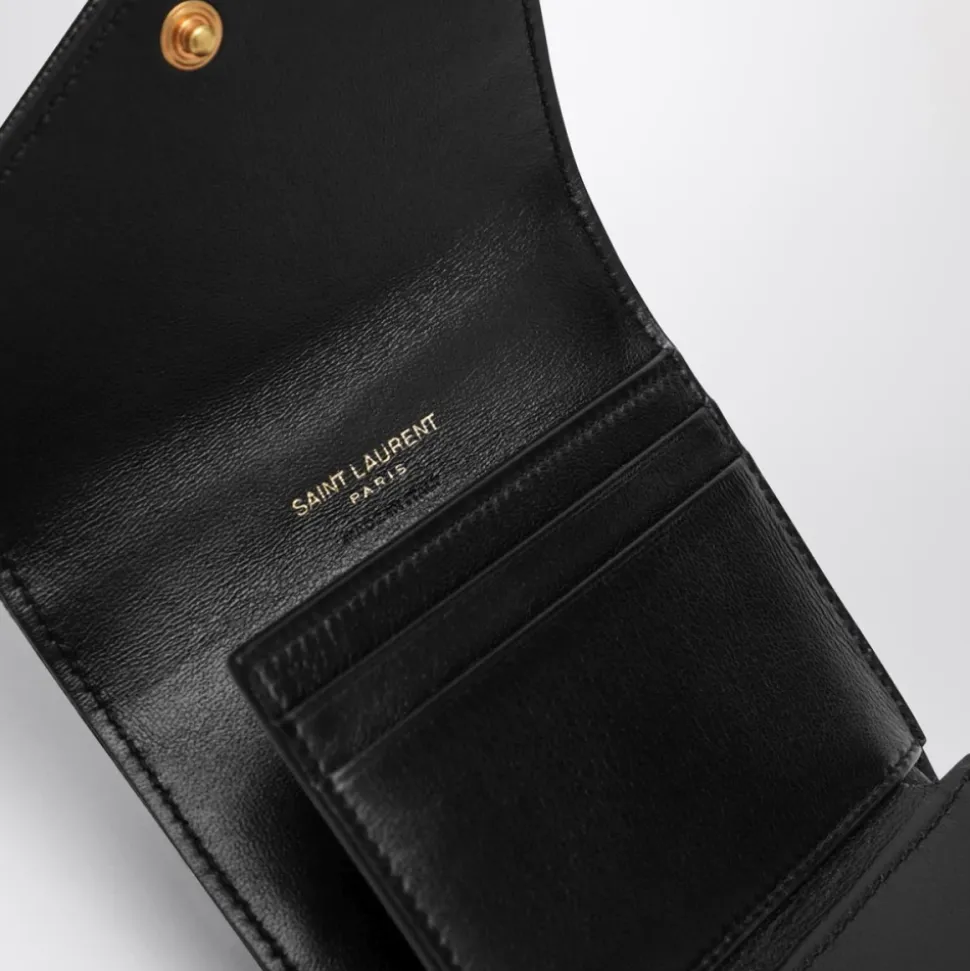 Saint Laurent Cassandre Matelassé Multi-Foldet Tegnebog kombinerer quiltet matelassé-læder med et kompakt, organiseret layout til daglig opbevaring af kort, mønter og sedler. Dens trykknaplukning og flere rum gør den til et praktisk luksustilbehør til hverdagsbrug. Vigtige egenskaber: Sort | Kalveskindslæder | Trykknaplukning | Fem kortlommer | En møntlomme | Et seddelrum | Et kvitteringsrum | Cassandre matelassé quilting | Grain de poudre præget læder | Guldfarvet metalhardware | Quiltet overstikning | Dimensioner og pasform: 10 x 9 x 3 cm | 3,9 x 3,5 x 1,2 in | Sammensætning og pleje: 100% kalveskind | Messing hardware