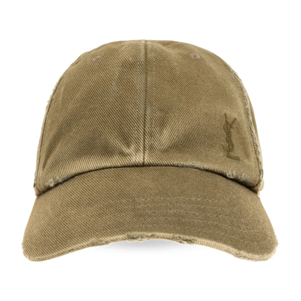 Saint Laurent Cassandre Washed Denim Baseball Cap opdaterer en klassiker med en slidt, vasket denimfinish og tonal Cassandre-broderi. Designet til hverdagsbrug, kombinerer den afslappet tekstur med en justerbar pasform for komfort. Vigtigste egenskaber: Khaki | Bomuld | Justerbar rem/lukning bagpå | Grosgrain-båndforing | Slidt seks-panelkonstruktion | Tonal Cassandre-broderi foran | Buet skygge | Flosset/let slidt twill-finish | Dimensioner og pasform: Skyggens længde: 7 cm | Størrelse 57 omkreds: 53,82 cm | One size med justerbar rem bagpå | Justerbar pasform | Sammensætning og pleje: 100% bomuld (yderside) | Broderi: 100% polyester