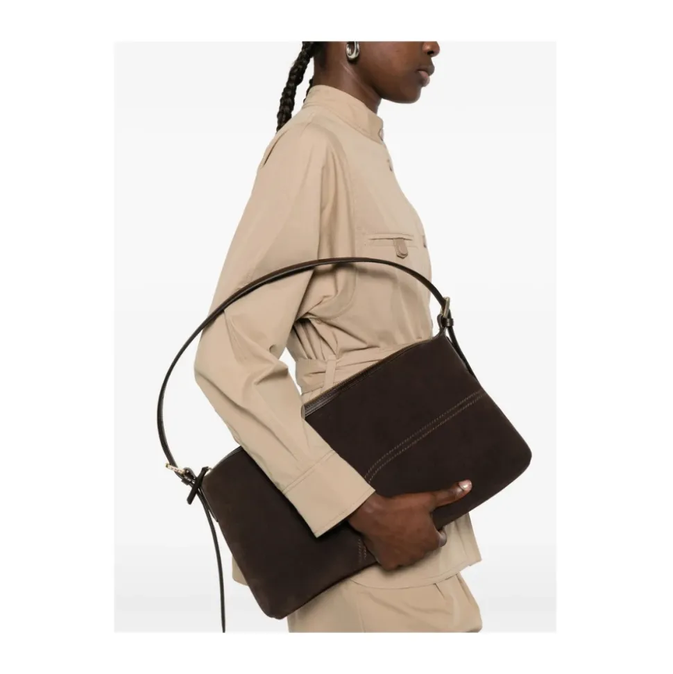 ATP Atelier Castellare Skuldertaske kombinerer en blød, aflang silhuet med praktisk organisering til hverdagsbrug. Designet til at blive båret over skulderen eller på tværs af kroppen, balancerer den elegant stil med nem funktionalitet. Nøgleattributter: Brun | Kalveskind | Struktureret silhuet bevarer formen | Justerbar skulderrem | Lynlåslukning | Indvendig lynlåslomme | Aflang silhuet | Tone-malede kanter | Guldfarvet hardware | Elegant lynlåstop | Dimensioner & pasform: H 20 cm | B 36 cm | D 6 cm | Skulderrem længste 85 cm | Skulderrem korteste 37 cm | Skulderrem drop længste 40 cm | Skulderrem drop korteste 18 cm | One size | Sammensætning & pleje: Kalveskind | Bomuldslærredsforing
