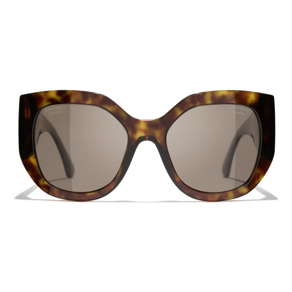 Chanel CH5550 Butterfly solbriller kombinerer en overdimensioneret butterfly-silhuet med polariserede glas for pålidelig, dagligdags solbeskyttelse. Den brune Havana acetatramme og det karakteristiske Chanel-hardware giver et raffineret og alsidigt look. Nøgleattributter: Brun | Havana | Acetat | Polariserede glas | 100% UVA/UVB-beskyttelse | UV-kategorifilter 3 | Receptvenlig | Inkluderer originalt etui | Inkluderer renseklud | Butterfly ramme | Signatur CC-logo på stængerne | Guldfarvet hardware | Dimensioner og pasform: Glasbredde: 55 mm | Glashøjde: 51 mm | Rammebredde: 130 mm | Stængernes længde: 140 mm | Sammensætning og pleje: Acetat | Polariserede glas | Tør af med en ren, tør klud. Opbevares i originalt etui, når de ikke er i brug.