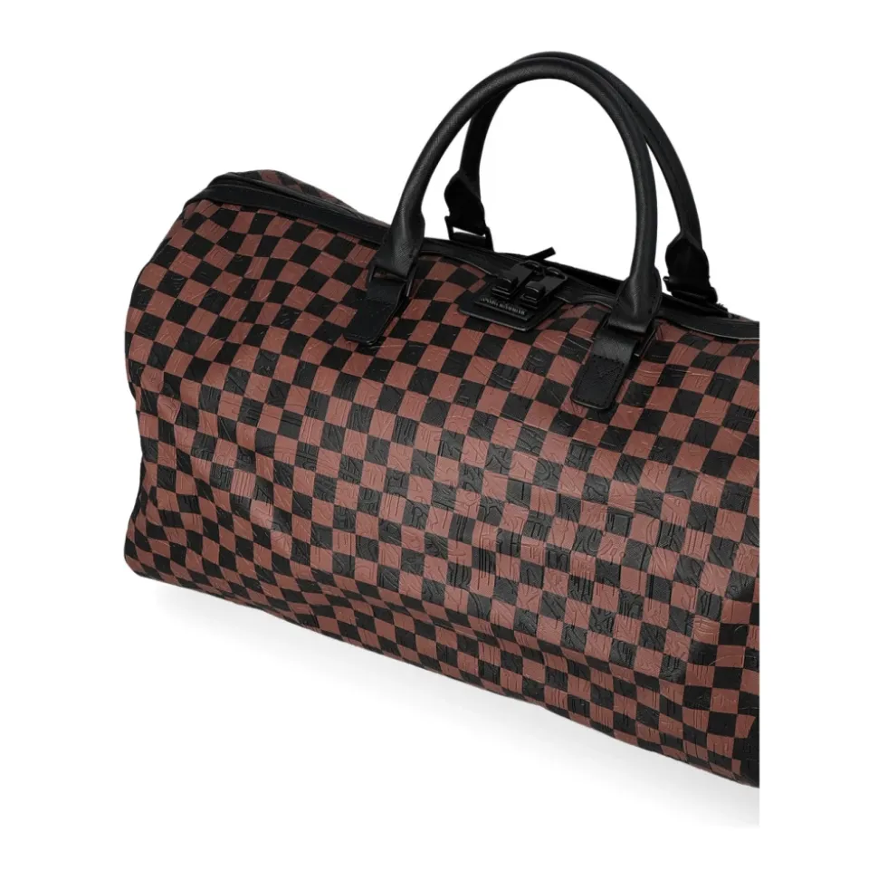 Spraygrounds Check 2 Emboss Duffle kombinerer et tekstureret, præget ternet design med kompakt, organiseret opbevaring til weekendture og daglig brug. Vigtige egenskaber: Brun | Marrone | Kunstlæder | Vandafvisende | Holdbar konstruktion | Justerbar og aftagelig skulderrem | Flere lynlåslommer (indvendigt og udvendigt) | Lynlåslukning | Polstret skulderpude | Præget ternet mønster | Struktureret duffelform | Metalhardware-accenter | Sammensætning og pleje: 100% kunstlæder