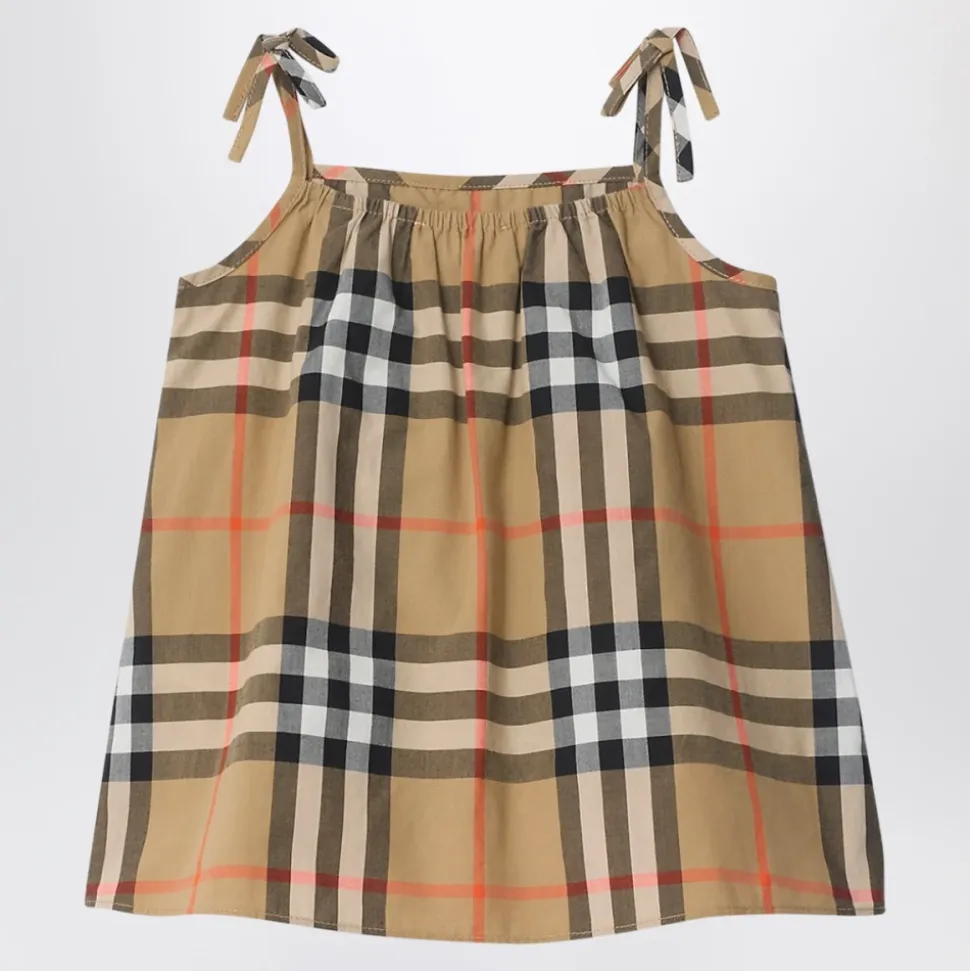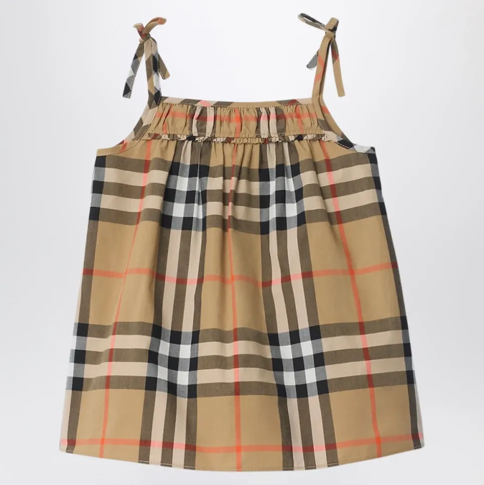 Burberry Check Cotton Dress er en let bomuldskjole vævet med brandets signaturtern. Den er designet med en rynket nederdel og sløjfedetaljer for et poleret hverdagslook og til særlige lejligheder. Vigtige egenskaber: Multifarvet | Sandfarvet tern | Bomuld | Letvægtsstof | Åndbar bomuld | Vævet Burberry tern | Rynket nederdel | Sløjfedetalje | Sammensætning og pleje: 100% bomuld | Maskinvask; holdes væk fra ild.