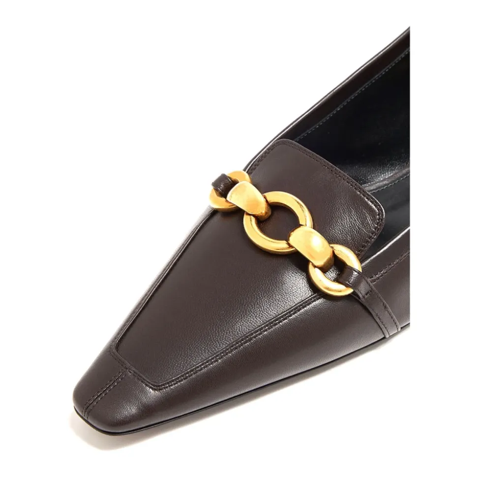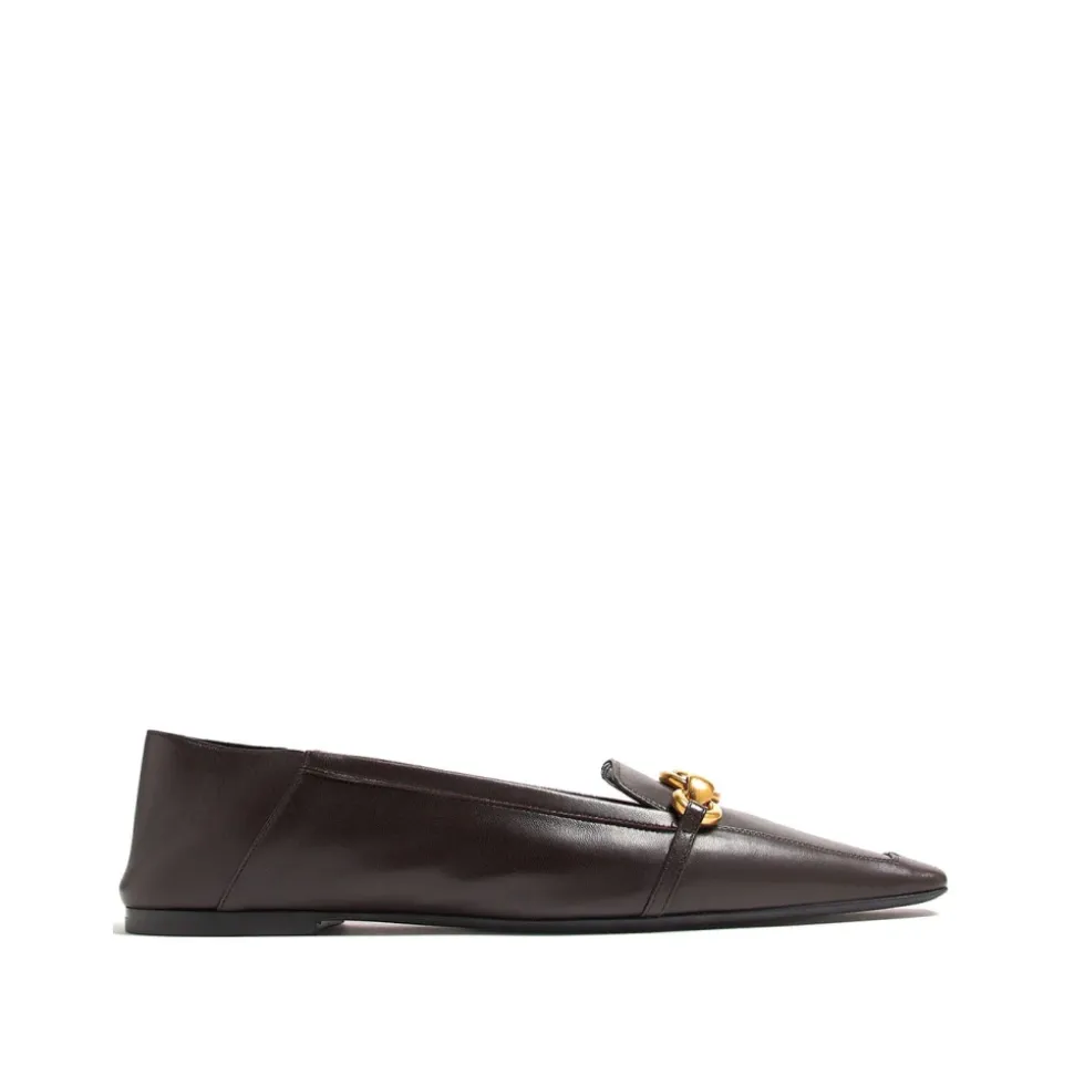 Løft din stil med Saint Laurent Chris Flat, designet til elegance og komfort. Disse ballerinaer har en sofistikeret guldfarvet kædeudsmykning, perfekt til at tilføje et strejf af luksus til ethvert outfit. Produkt detaljer: Maro | Brun | Nappalæder | Slip-on styling | Firkantet spids tå | Guldfarvet kædeudsmykning | Dimensioner og pasform: Normal pasform | Sammensætning og pleje: Nappalæderoverdel | Lædersål | Professionel læderrensning kun
