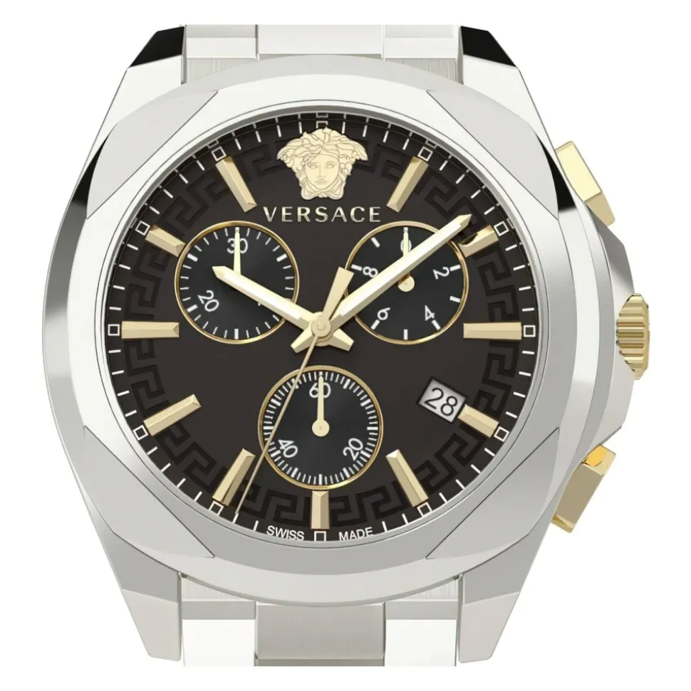 Forkæl dig selv med denne fantastiske Versace Chrono Lady ur. Med sit elegante design med en guld og sort urskive er dette schweizisk producerede ur et must-have. Vandafvisende op til 5 bar, er dette ur perfekt til den moderne kvinde. Bestil dit i dag!