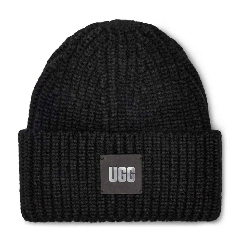 UGG Chunky Rib Beanie er en chunky ribstrikket hue, der er bygget til varme i koldt vejr, med en bred manchet og et læderlogomærke for et raffineret, afslappet look. Nøgleattributter: Sort | Akryl | Varm | Justerbar manchet | Læderlogomærke | Chunky ribstrik | Bred manchet | Dimensioner og pasform: Højde: 22,9 cm | Bredde: 24,1 cm | Manchet: 10,2 cm | One size | Sammensætning og pleje: 78% akryl, 17% nylon, 5% uld (eksklusiv pynt) | Håndvask koldt, læg fladt til tørre.