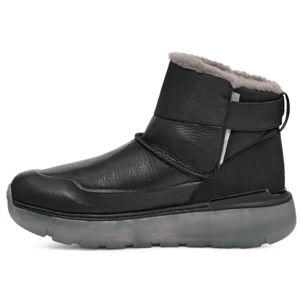 UGG City Mini er en vandtæt vinterstøvle designet til kolde, våde forhold. Den kombinerer sømforseglet læder med blødt sherpa/Uggplush-foring for isoleret komfort og pålidelig trækkraft. Nøgleattributter: Sort | Læder | Vandtæt | Sømforseglet konstruktion | Vejrbestandig ned til -20°C | Lukning med burrebåndsrem | Trækflig bagpå | EVA-mellemsål | Gummiydersål | Skaft i ballistisk nylon | Sherpa- og UGGplush-foring | Chunky profileret ydersål | Sammensætning og pleje: Læder | Ballistisk nylon | UGGplush / sherpa-foring | EVA-mellemsål | Gummiydersål.UGGs føles tætte i starten, men foret giver sig med tiden. Vi anbefaler din normale størrelse.