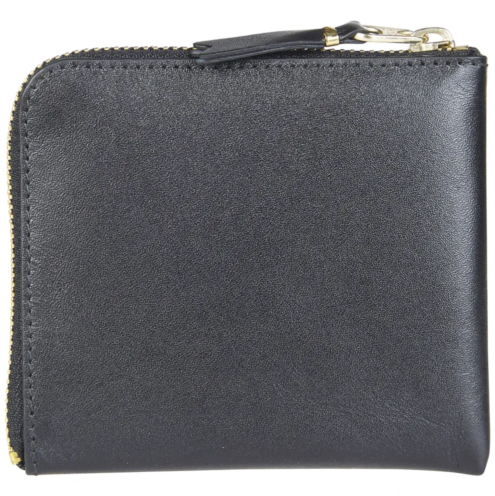 Comme des Garçons Classic Leather Line Wallet er en kompakt læderpung med lynlås, designet til organiseret hverdagsbrug. Dens strømlinede silhuet holder kort, mønter og andre nødvendigheder pænt tilgængelige. Vigtige egenskaber: Sort | Nero | Kohudelæder | Lynlåslukning | Indvendig kortholder | Indvendig møntpung | Forlomme | Kompakt silhuet | Hjørnelynlåsdetalje | Trykt indvendigt logo | Guldfarvet hardware | Mål og pasform: 11 x 9,5 cm | Sammensætning og pleje: 100% kohudelæder