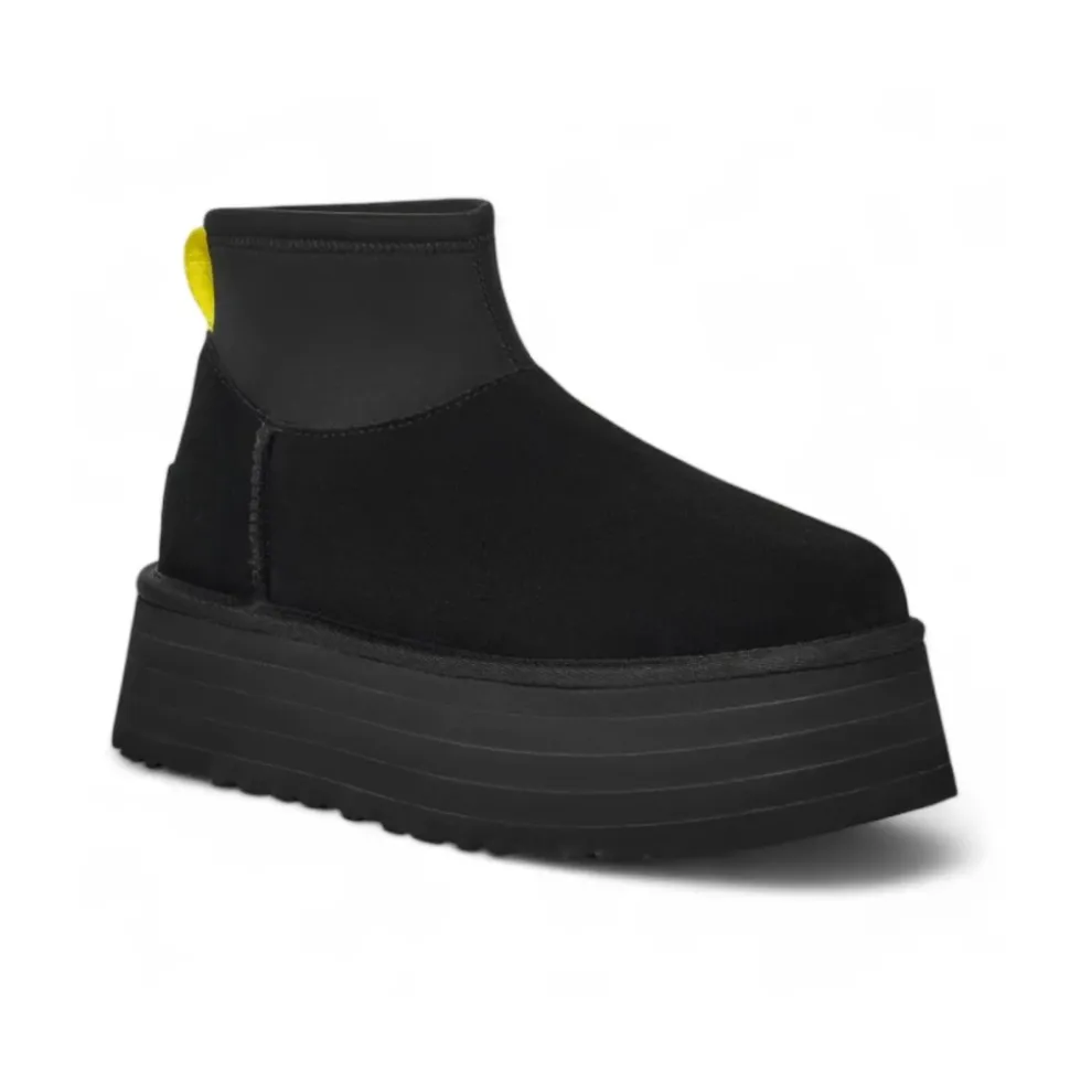 UGG Classic Mini Dipper er en kompakt opdatering af Classic Dipper, der kombinerer en overdel i ruskind med et kort neoprenskaft og en chunky platformsål for varm, afslappet styling, der er ideel til jeans med lige ben eller cropped bukser. Vigtige egenskaber: Sort | Ruskind | Isolerende UGGplush™-foring | Vaffelgummisål med skridsikkert greb | Let platformkonstruktion | Trækfane bagpå for let at tage dem af og på | Neoprenskaft for en tætsiddende følelse | Platformsål for ekstra højde | Overdel i ruskind | Kort neoprenskaft | Platformsål | Trækfane bagpå i gult teknisk stof | UGGplush™-foring | Dimensioner og pasform: Platformshøjde: 6 cm | Kort neoprenskaft (reduceret længde) | Sammensætning og pleje: Overdel: 100 % ruskindslæder | Foring/indersål: 60 % uld, 40 % lyocell | Skaft: neopren | Trækfane: teknisk stof (gul) | Sål: letvægtsgummi (vaffel, skridsikker), platform