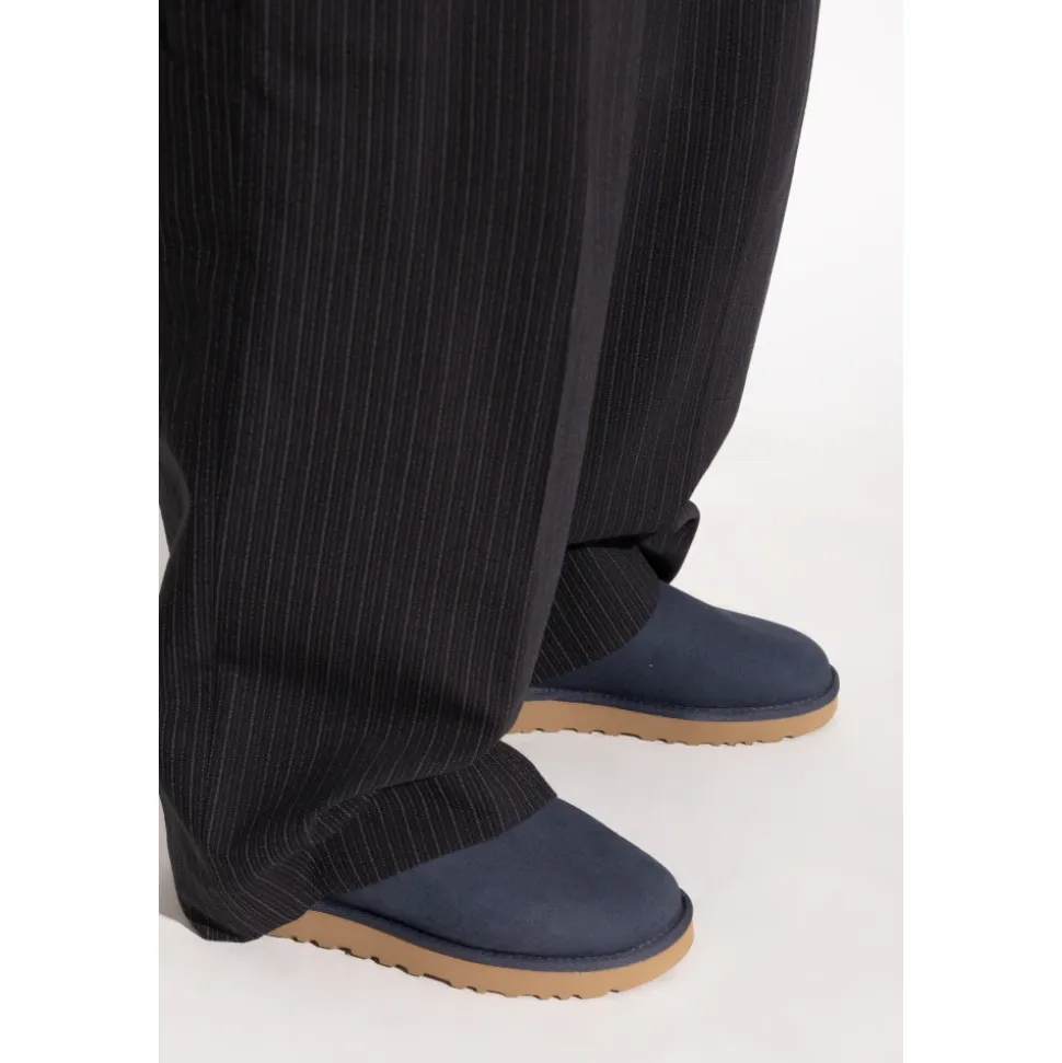Hold dig varm og stilfuld denne vinter med disse mørkeblå UGG Classic Mini II ankelstøvler til kvinder. Lavet med en 17mm twinface fåreskindsoverdel behandlet mod vandafvisning. Funktioner inkluderer en EVA-ydersål, fåreskindforing og indersål, polyesterkant, rund tå, slip-on stil, trækfane, overlock-sømdetaljer og et læderlogo på hælen. Skafthøjde: 13 cm..UGGs føles tætte i starten, men foret giver sig med tiden. Vi anbefaler din normale størrelse.