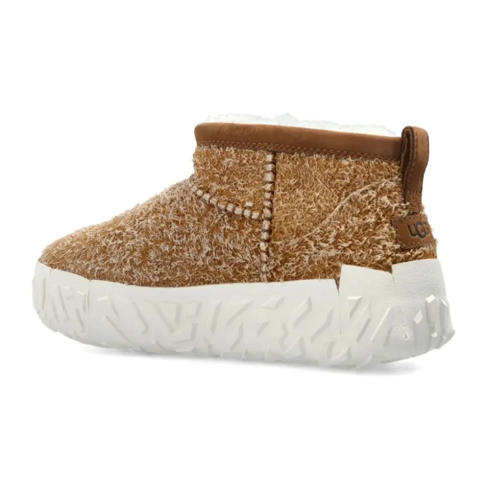 UGG Classic Ultra Mini Wrap Tech opdaterer brandets Classic silhuet med et lavere skaft og en omsluttet Vibram-ydersål. Den kombinerer en overdel i ruskindslæder med blødt UGG-for, der giver komfort hele dagen i vintervejret. Vigtige egenskaber: Brun | Chestnut | Læder | Vibram-ydersål | UGGplush-for | Støbt PU-fodseng | Letvægts EVA-mellemsål | Let at tage af og på, lavt skaft | Ankelstøvle silhuet | Ruskindsoverdel | Præget hældetalje | Dobbelte sømdetaljer | Pløs | Råkantet omsluttet ydersål | Dimensioner og pasform: US herrestørrelse | Sammensætning og pleje: 100% læder
