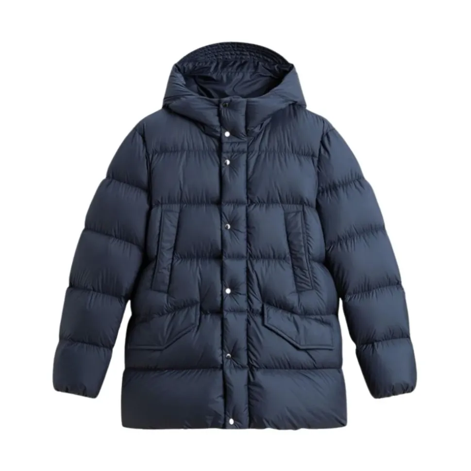 Woolrich Cloud Davis Parka er en mellemvægtig vinterparka, der kombinerer silkeagtig mikrofiber med 90/10 dunfyld for letvægtsvarme og vejrbeskyttelse. Den er designet til hverdagsbrug om vinteren med justerbare funktioner og flere lommer for praktisk brug. Vigtige egenskaber: Blå | Melton Blå | Mikrofiber | Vandafvisende | Vindafvisende | Mellemvægtig isolering til koldt vejr | Justerbar hætte med snorelås og snøre | Tovejs lynlås skjult af stormklap med trykknapper | To paspolerede brystlommer med skjulte trykknapper | To sidelommer med klap og skjulte trykknapper | To indvendige lommer (en med lynlås) | Indvendig snøre i sømmen | Hætte med høj krave og skygge | Rullekrave med trykknapper | Skjult stolpelukning | Trykt logo på hætten | Sidelabel | Vandret quiltning | Dimensioner og pasform: Almindelig pasform | Temperatur: Mellemvægtig (-10 °C til 0 °C) | Sammensætning og pleje: Yderstof: 100% Polyester | Inderstof: 100% Polyamid | Vattering: 90% Grå andedun, 10% Fjer | Maskinvask ved maks. 30°C skånsom cyklus; vask separat; professionel rensning; må ikke bleges; må ikke tørretumbles; køligt strygejern.