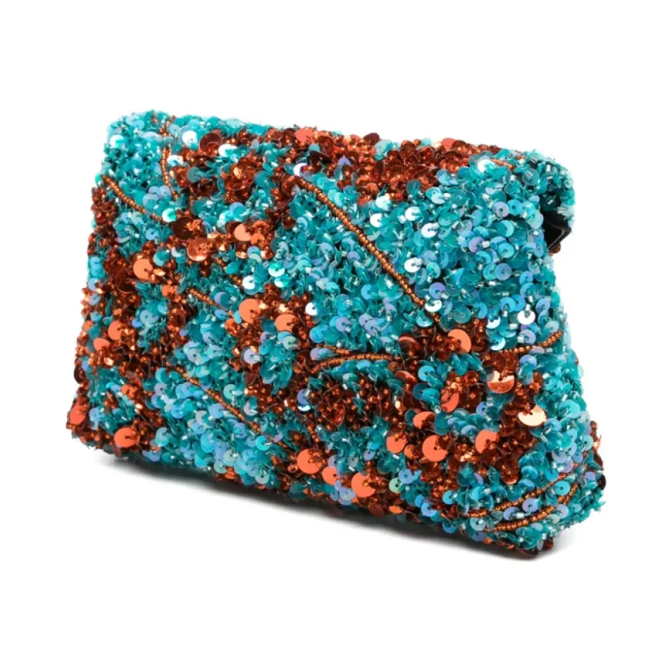Dries Van Noten Clutch – en kompakt, flerfarvet clutch designet til at bære essentielle ting til arrangementer og aftener, samtidig med at den giver et markant farveudtryk. Nøgleattributter: Flerfarvet | Blå | Orange