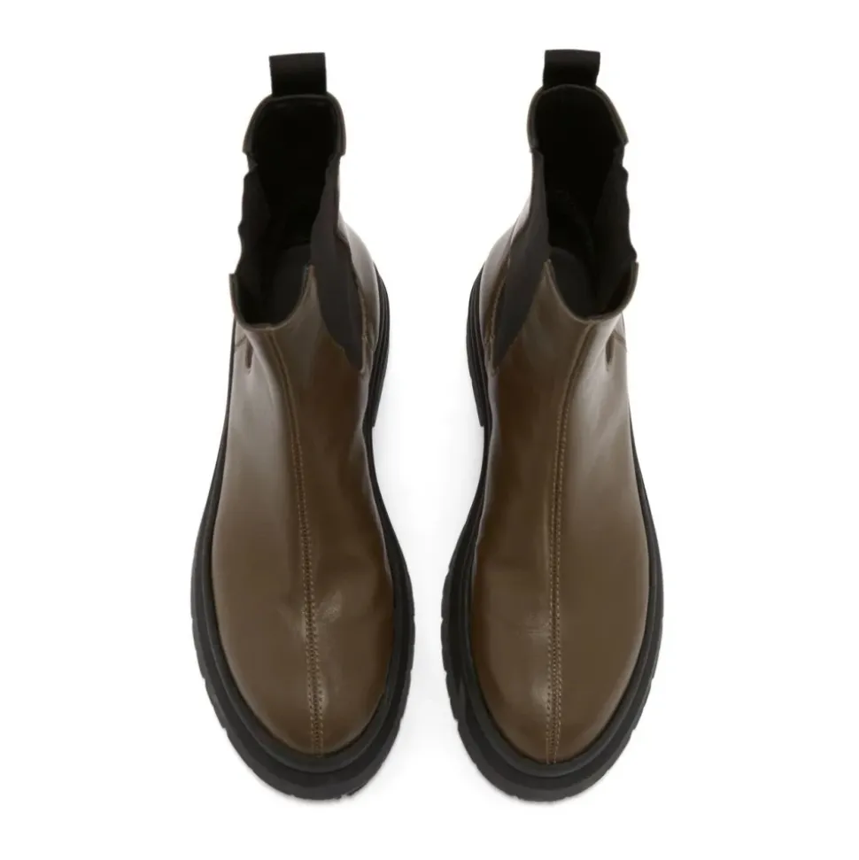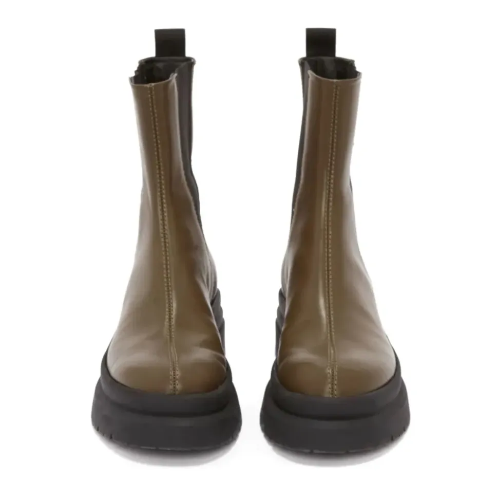 JW Anderson Combat Støvletter er læder ankelstøvler, der kombinerer afslappet stil med en robust gummisål. Designet til hverdagsbrug, de leverer en lav profil, holdbar mulighed for by- og fritidslooks. Vigtige egenskaber: Grøn | Læder | Gummisål | Lukket konstruktion | Flad hæl | Ankelhøjde | Chelsea-støvle kategori | Sammensætning & pleje: Ydre: Læder | Indre: Læder | Sål: Gummi 100%