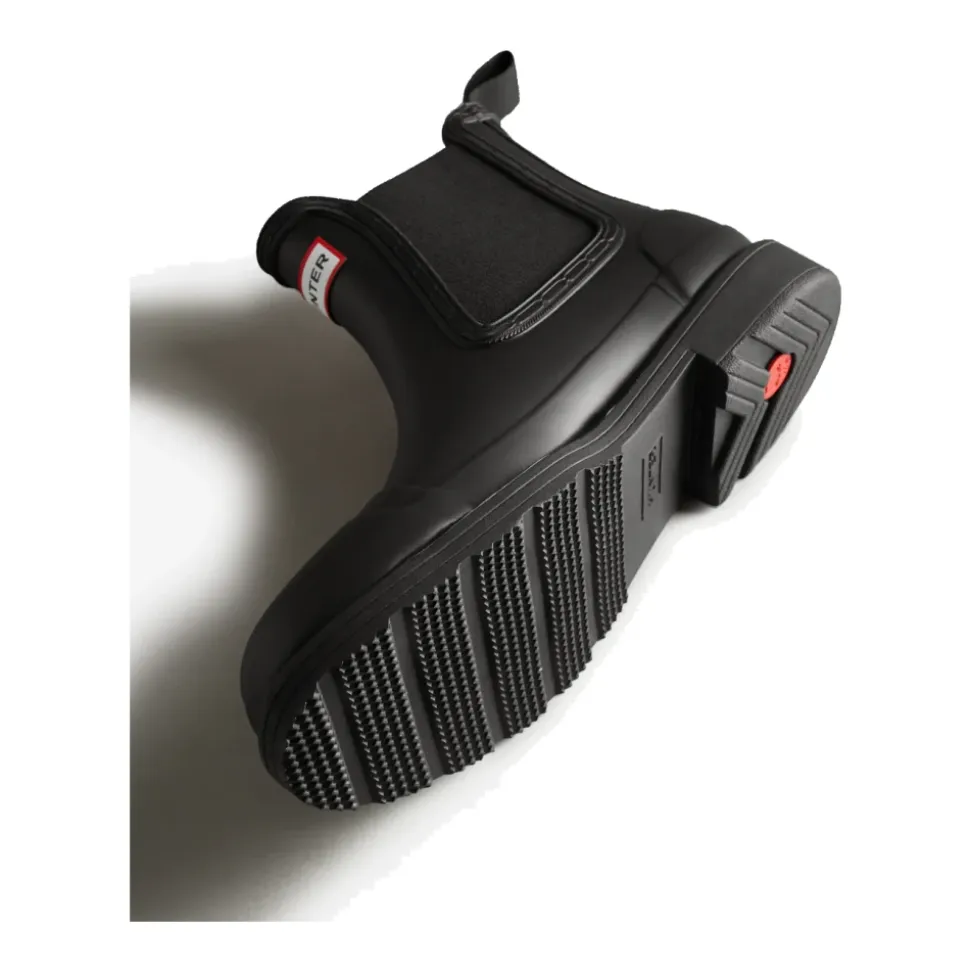Præsenterer Chelsea Commando-støvlen fra Hunter, fremstillet med FSC®-certificeret naturgummi fra uafhængigt auditerede skove. Disse 100% vandtætte støvler er håndlavet under strenge standarder for at beskytte skove, dyr og lokalsamfund. Fremstillet med FSC®-certificeret vegansk gummi er Chelsea Commando-støvlen et ikon fra vores Originale kollektion. Bevarer alle de elskede funktioner fra den Originale Chelsea-støvle, såsom fleksibel forstærkning og Hunter-greb, har denne nye silhuet en højere profil, der strækker sig 15 mm højere på skaftet. Denne sorte Chelsea-støvle til kvinder har også opdateret foring og indersål af polyester. Størrelse/Pasformsoversigt: Normal i størrelsen, smal pasform. Hvis du er mellem størrelser eller foretrækker at bruge tykke sokker, anbefales det at vælge en størrelse større. Bemærk: Den elastiske forstærkning er ikke helt vandtæt.