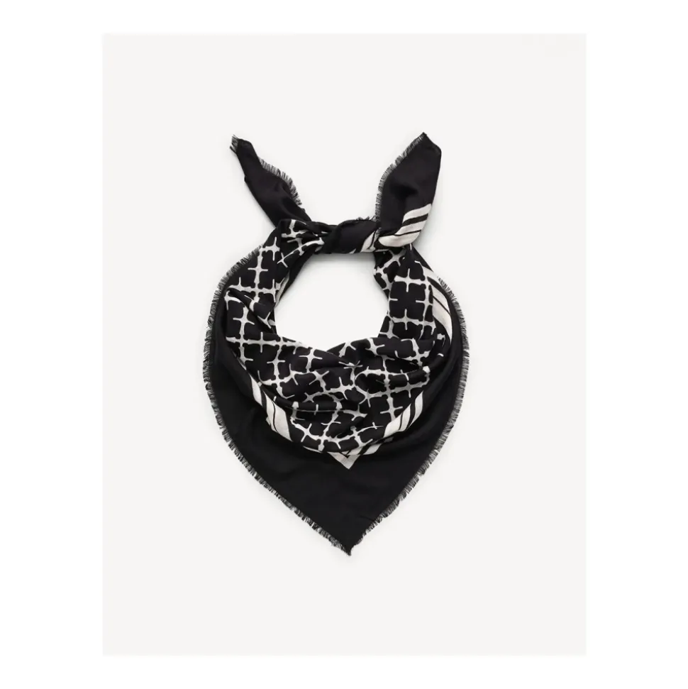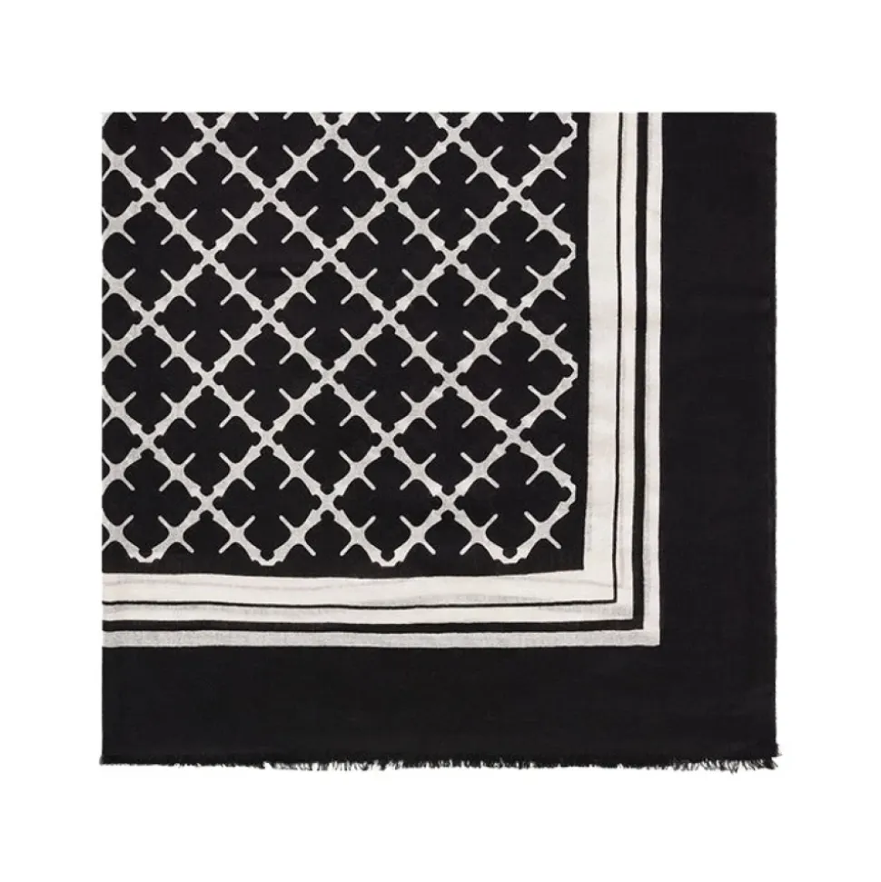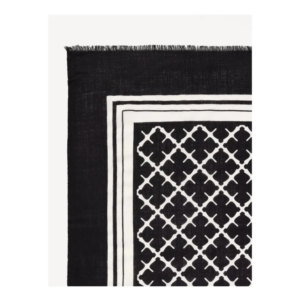 By Malene Birger Cornelis Shawl er et stort, firkantet uldtørklæde, der skiller sig ud med sit kontrasterende print og fine frynser. Den meget lette uldkonstruktion gør det til et alsidigt tilbehør, der kan bæres på hovedet, omkring halsen, over skuldrene eller bundet til en taske. Vigtige egenskaber: Sort | Uld | Flere stylingmuligheder | Kan bindes, draperes eller bæres som et tørklæde | Kan bruges til at dekorere en taske eller kurv | Firkantet form | Kontrasterende print | Fine frynser | Mål og pasform: Stor | Sammensætning og pleje: 100% uld