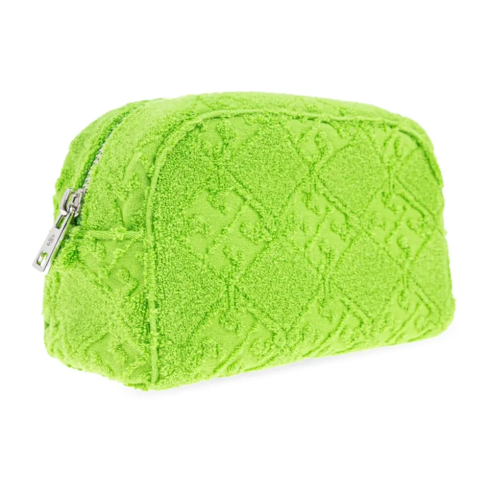 Ella makeup-tasken fra Tory Burch kombinerer funktionalitet med stil og tilbyder en blød tekstur og et moderne design, der er perfekt til rejser. Produkt detaljer: Grøn | Terry-lignende stof | Sikker lynlåslukning | Præget geometrisk mønster | Rektangulær afrundet form | Dimensioner og pasform: Bredde: 10 cm | Længde: 17 cm |