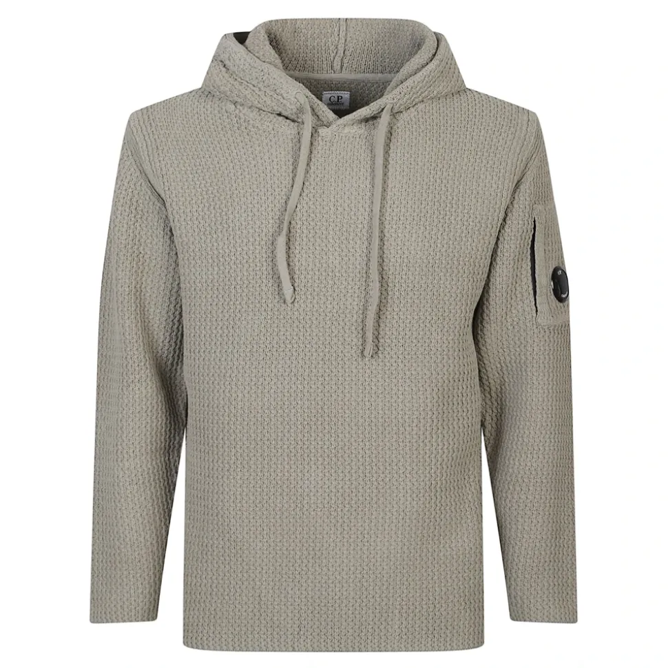 C.P. Company Cotton Chenille Hooded Sweater kombinerer en blød chenille-strik med brandets karakteristiske linse-detalje. Designet til lagvis varme, den har en justerbar hætte til hverdagsbrug. Vigtigste egenskaber: Grøn | Fallen rock | Cotton chenille | Justerbar hætte | Hætteudskæring | Lange ærmer | Ribkant | Linse-detalje | Beklædningsfarvet | 5-gauge strik | Dimensioner og pasform: Regular fit | Sammensætning og pleje: 100% bomuld | Maskinvask maks. 30°C (mild proces). Må ikke bleges. Må ikke tørretumbles. Stryg maks. 110°C uden damp.