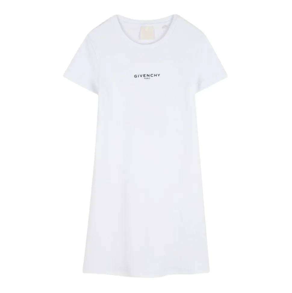 Givenchy præsenterer Cotton Crew-Neck Kortærmet Kjole med Logo, en enkel bomuldskjole defineret af en rund halsudskæring og et diskret logo foran – designet til hverdagsbrug. Vigtigste egenskaber: Hvid | Bomuld | Rund halsudskæring | Korte ærmer | Logo detalje