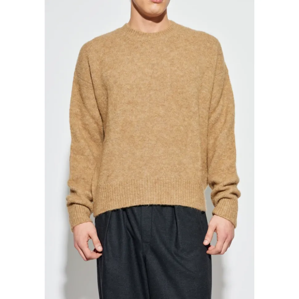 Ami Paris Crew Neck Sweater kombinerer en blød alpaka-uldstrik med en minimalistisk, dekorationsfri silhuet for et raffineret hverdagslook. Den bløde tekstur og rene crew-udskæring gør den velegnet til lagvis eller selvstændig styling. Vigtige egenskaber: Beige | Alpaka | Ekstremt blød, fluffy strik | varme | Ribstrikkede manchetter og kant | Lange ærmer | Crew/oval halsudskæring med fin ribkant | Dekorationsfrit, minimalistisk design | Lige silhuet | Mål & pasform: Højde: 185 cm | Bryst: 92 cm | Talje: 74 cm | Hofter: 91 cm | Regular fit | Modelhøjde: 185 cm — iført størrelse L | Sammensætning & pleje: 42% alpaka | 40% uld | 16% polyamid | 2% elastan | Håndvask koldt.