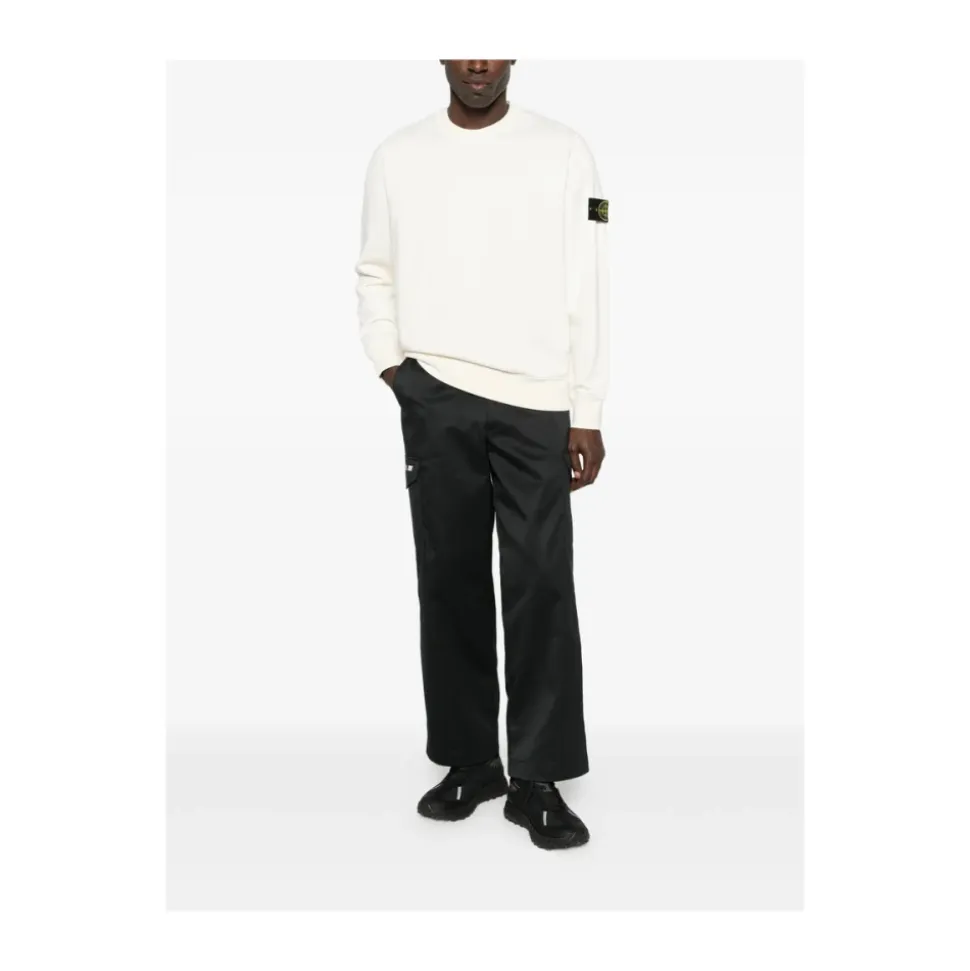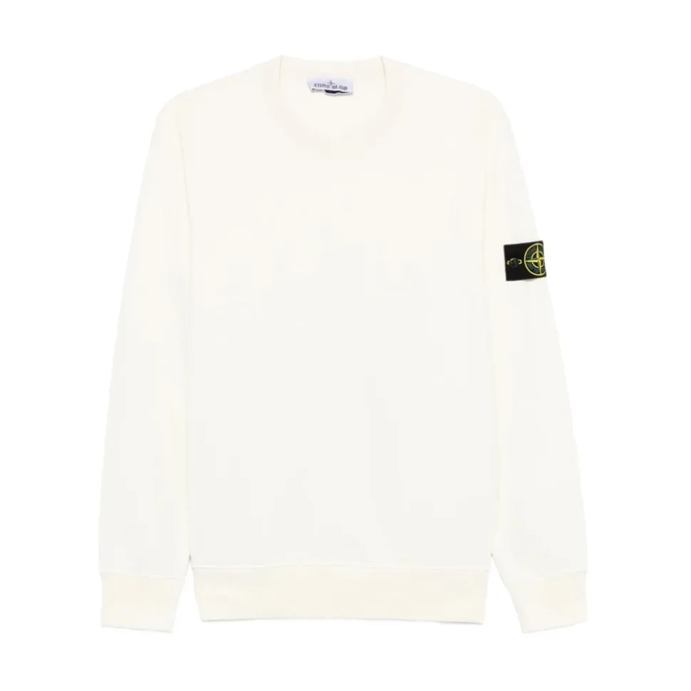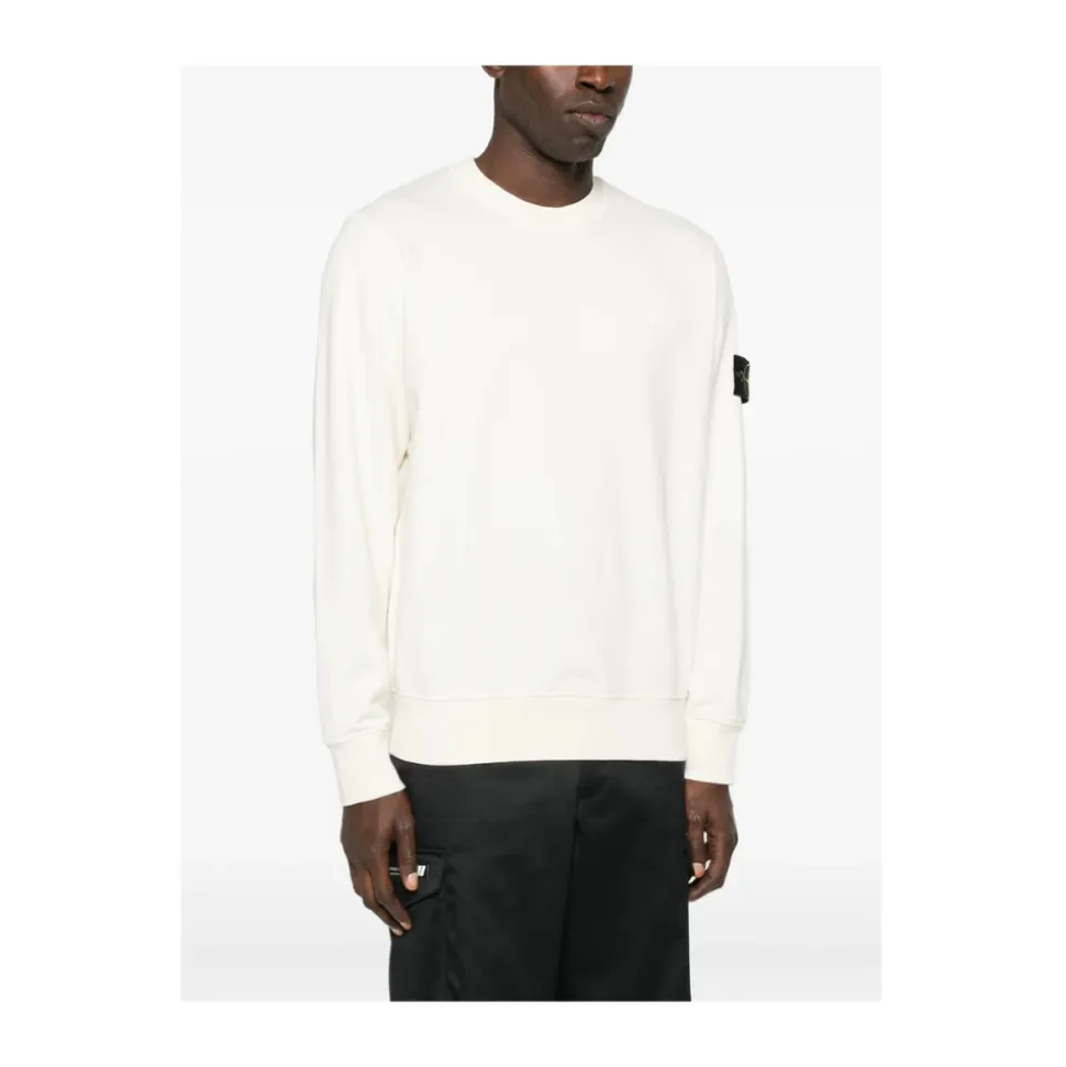 Stone Island Crewneck Sweatshirt kombinerer en klassisk crew-neck silhuet med mærkets signaturærmemærke for alsidig hverdagsbrug. Vigtige egenskaber: Hvid | Bomuld | Rund hals | Lange ærmer | Ribstrikkede manchetter | Ribstrikket kant | Logo patch på venstre ærme | Dimensioner & pasform: Regular fit | Sammensætning & pleje: 100% Bomuld | Maskinvask ved 40°C; må ikke bleges; må ikke tørretumbles; tørres fladt i skyggen; stryges ved lav temperatur; må ikke renses; følg vaskeanvisningen på tøjet for detaljer.