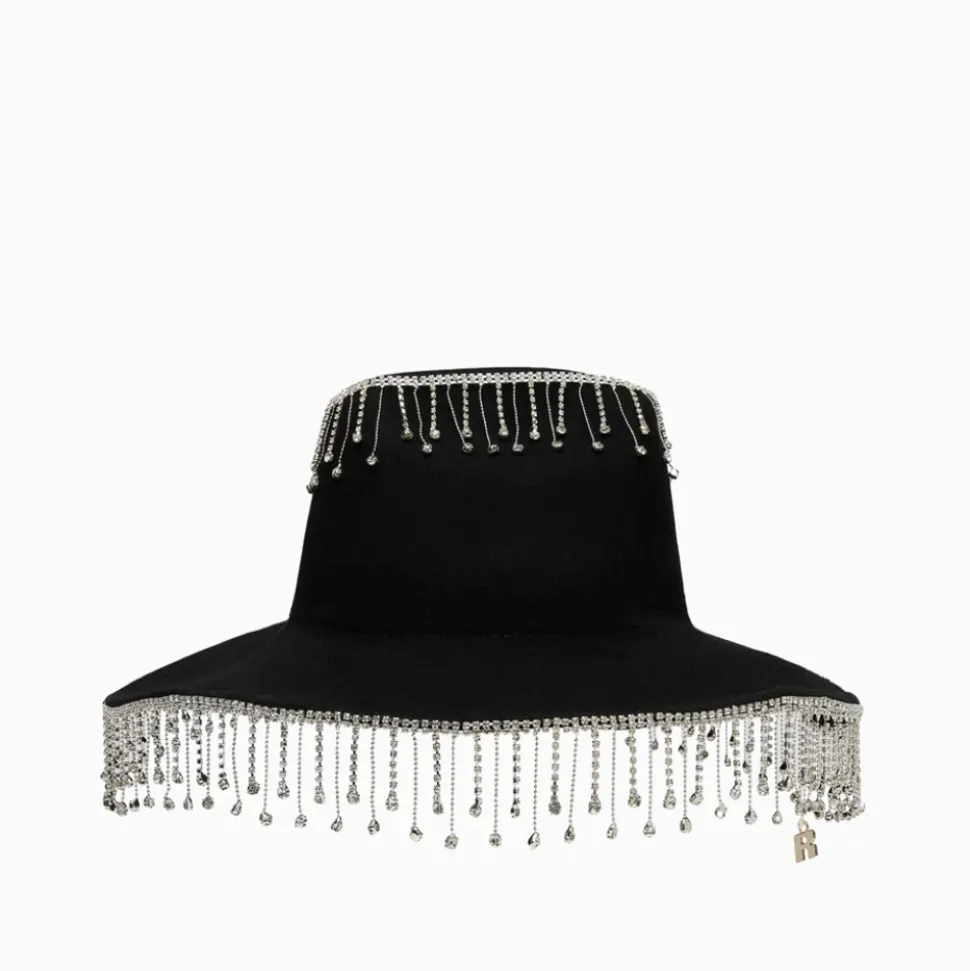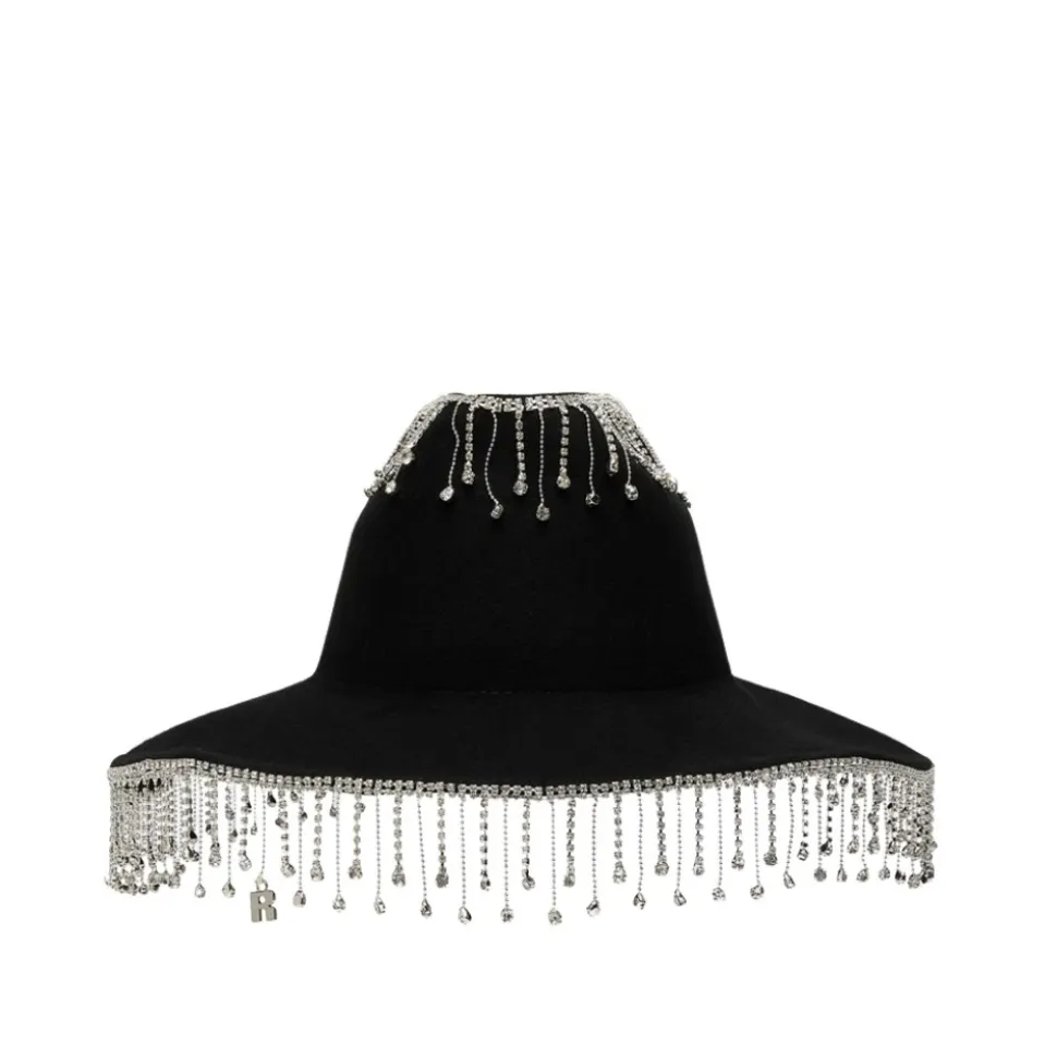 Tilfør dit outfit et strejf af western-charme med denne stilfulde Crystal Cowboy Hat fra ROTATE Birger Christensen. Den er fremstillet af 100% uld og har krystaldekorationer over det hele, der giver et glamourøst look. Produkt detaljer: Sort | Uld | Krystaldekorationer over det hele | Kontrastfarvet for med brandets logo | Sammensætning og pleje: 100% Uld | Renseri anbefales