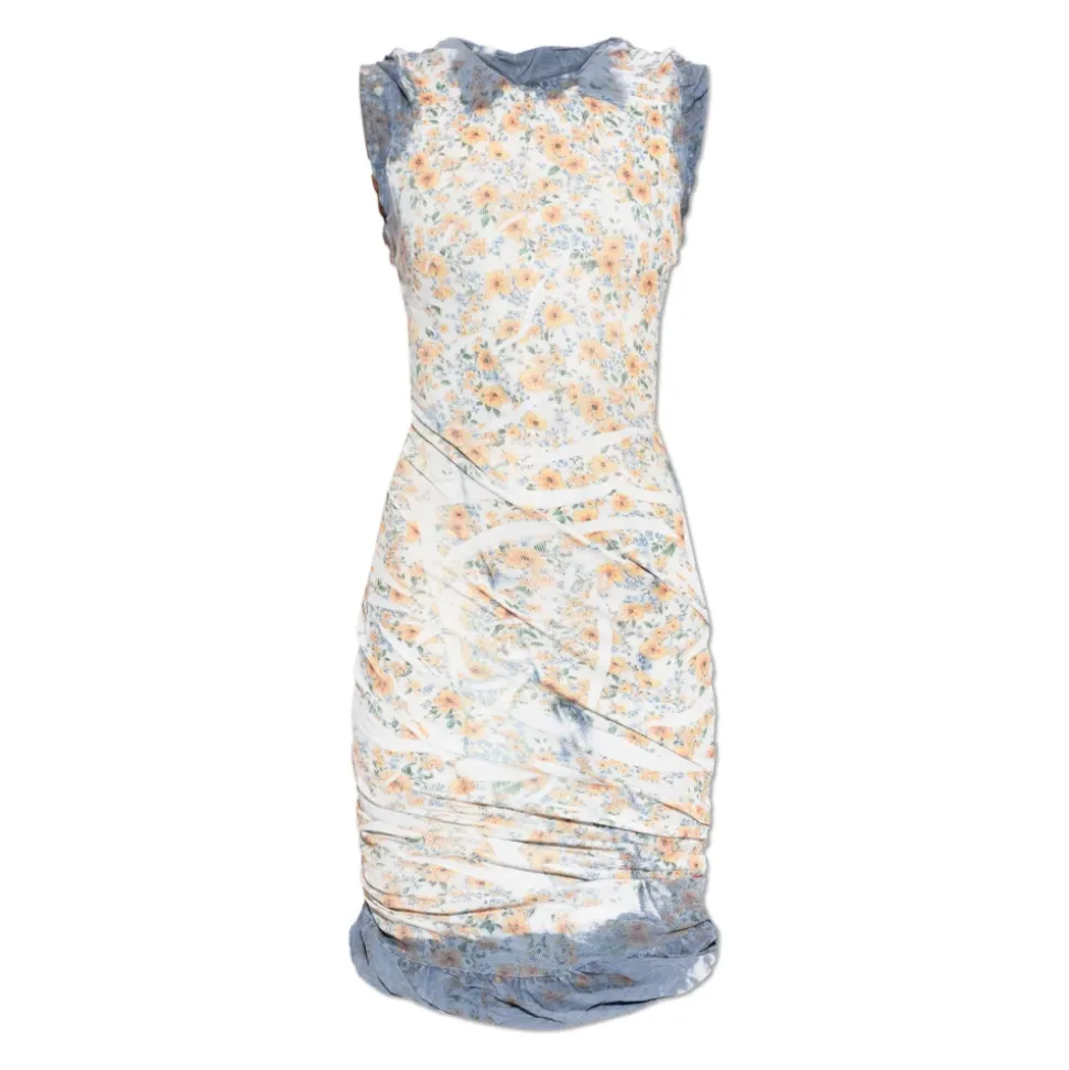 Diesel D-AYANA Dress kombinerer en tætsiddende mini-silhuet med et flerfarvet blomsterprint og mesh-strikket konstruktion. Den er designet til at forme silhuetten med fine rynker og drapering til et raffineret outfit til både dag og aften. Vigtige egenskaber: Flerfarvet | Mesh-strik | Elastisk stretch | Letvægt | Let gennemsigtig | Brede stropper | Rund halsudskæring | Brede stropper | Kropsnær mini-længde | Flerfarvet blomstermønster | Blågrå ombre-accenter | Rynker og drapering | Dimensioner og pasform: Modelhøjde: 177 cm | Bryst: 83 cm | Talje: 61 cm | Hofter: 89 cm | Modellen er iført størrelse: S | Kropsnær pasform | Mini-længde