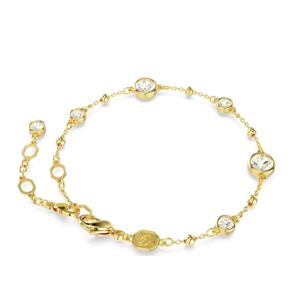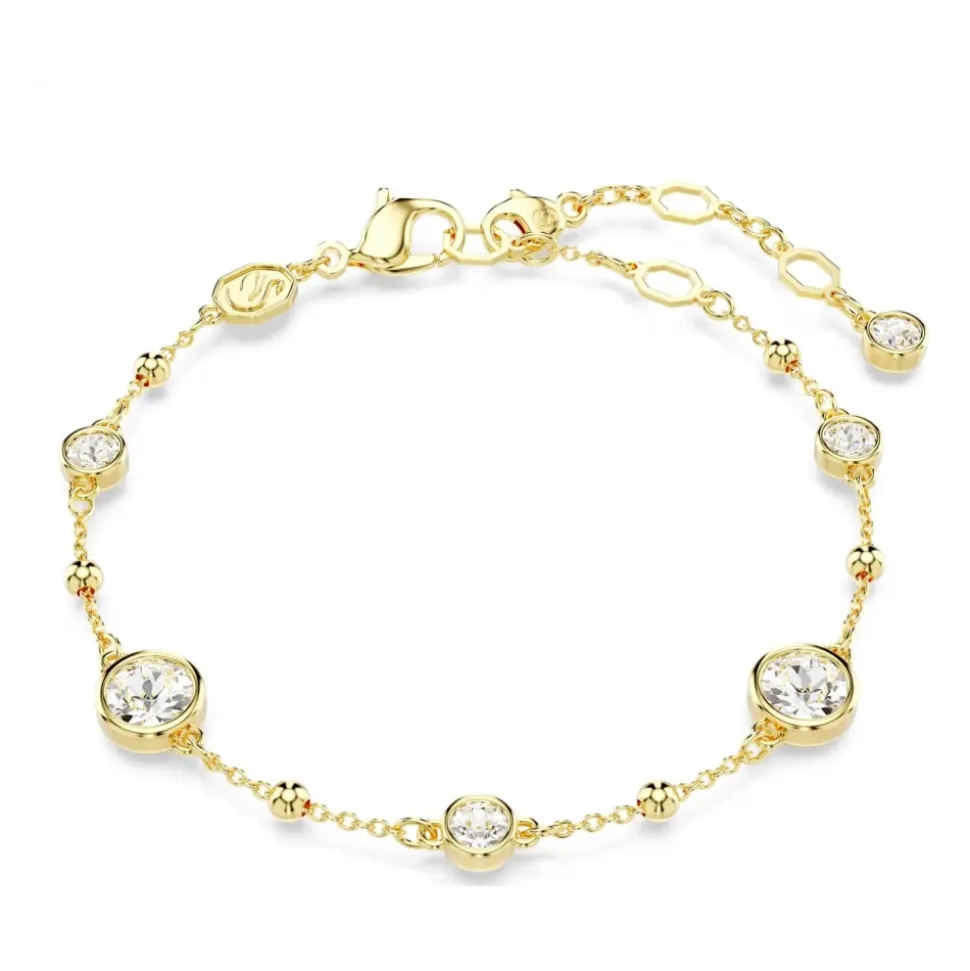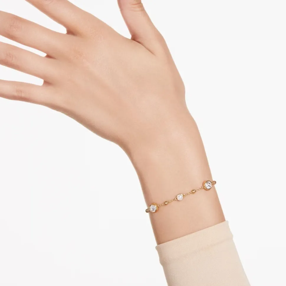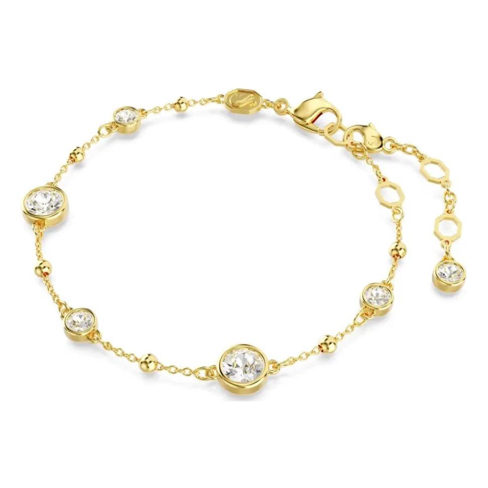 Forkæl dig selv med dette fantastiske Swarovski armbånd fra Imber kollektionen. Med hvide krystaller indfattet i en gul legering er dette armbånd det perfekte tilbehør til enhver outfit. Med en justerbar længde på 16,5 – 19,5 cm og en sikker karabinlås er det et must-have for enhver modebevidst kvinde.