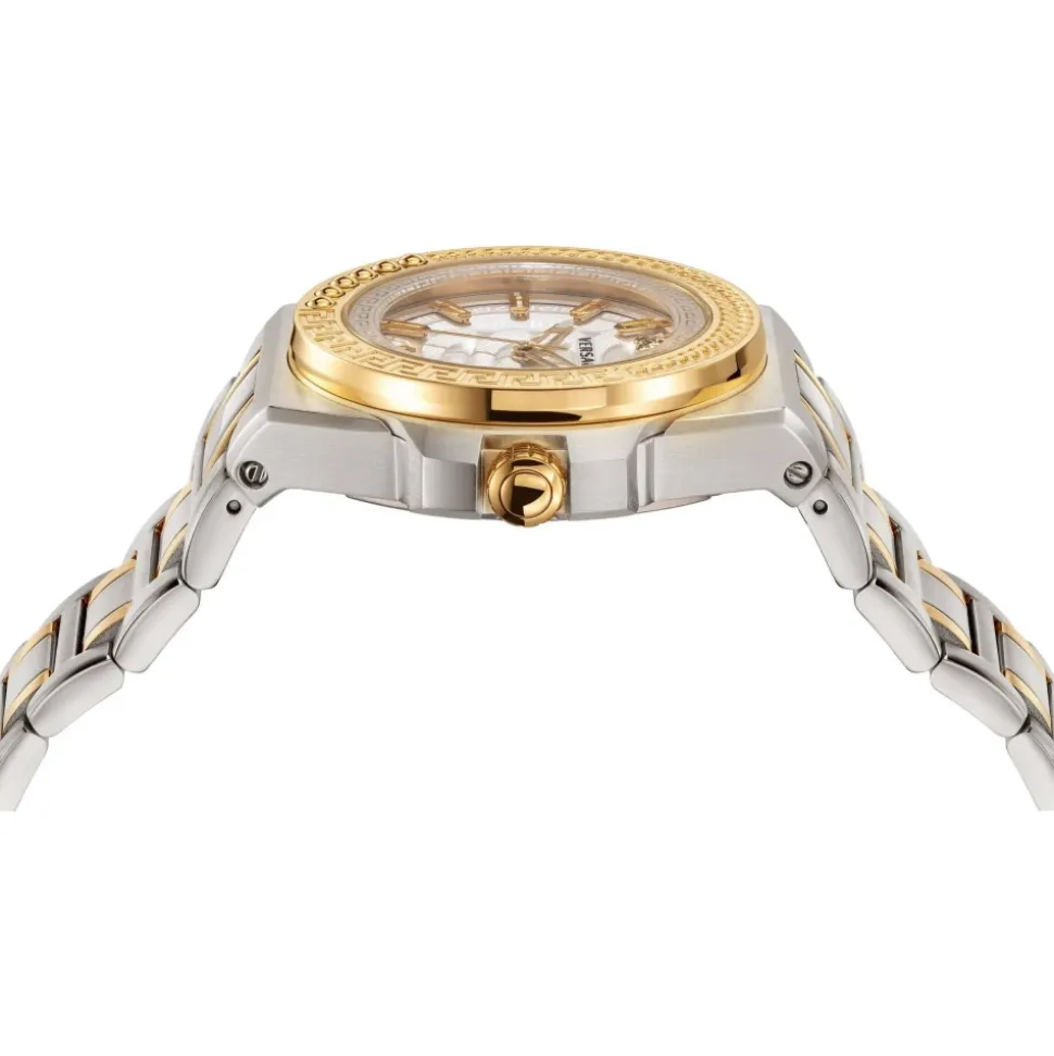 Chain Reaction er et eksklusivt ur til kvinder, der foretrækker en sporty stil og har deres eget modebevidsthed. Urets strikmønster er inspireret af de legendariske sneakers fra Chain Reaction-kollektionen. Lunetten er beriget med dekorative detaljer – med koniske og graverede elementer. Det kombinerede armbånd skiller sig ud med sit livlige design og bliver til en ægte Versace erklæring.