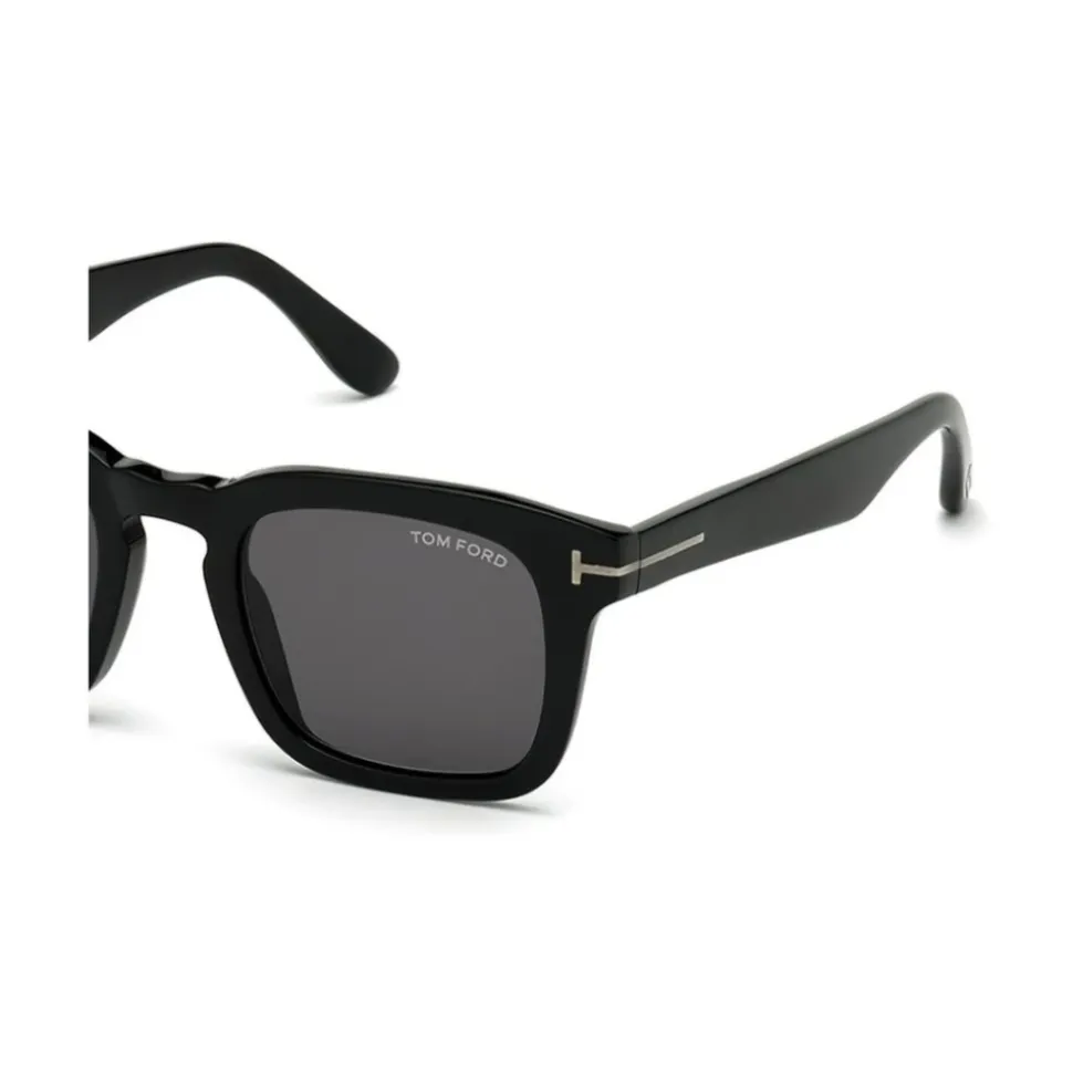 Forhøj din stil med disse sorte Tom Ford ‘Dax’ solbriller til mænd. Med en blank T-logo på templet, røgfarvede linser og 100% UV-beskyttelse. Lavet af acetat med dimensioner: Bro – 22 mm; Linsebredde – 50 mm; Tempel – 145 mm.