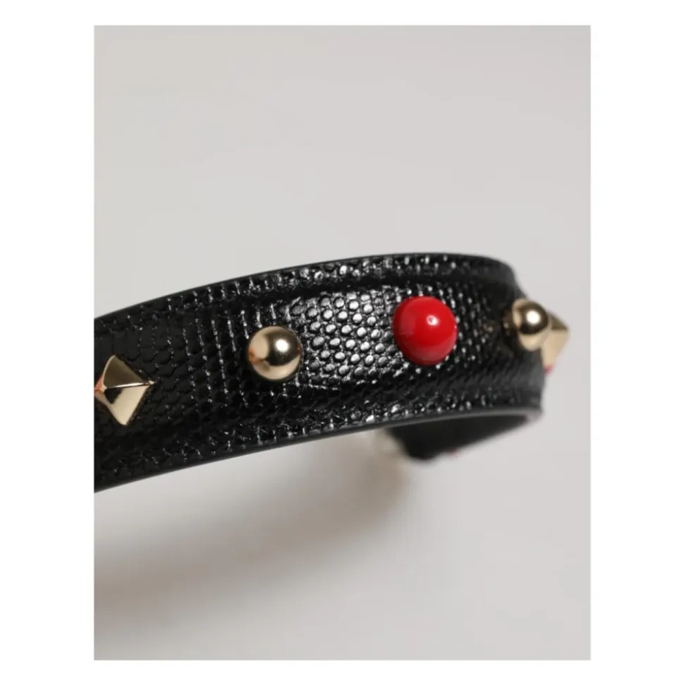 Dolce & Gabbana Dekoreret læder taskerem opdaterer enhver håndtaske med dekorative detaljer og signatur hardware. Remmen kombinerer premium kalvelæder med pyntede detaljer for en øjeblikkelig stilopfriskning. Vigtigste egenskaber: Sort | Kalvelæder | Dekorative detaljer | Metal DG-logo | Vintage messing hardware | Sammensætning & pleje: 100% kalvelæder