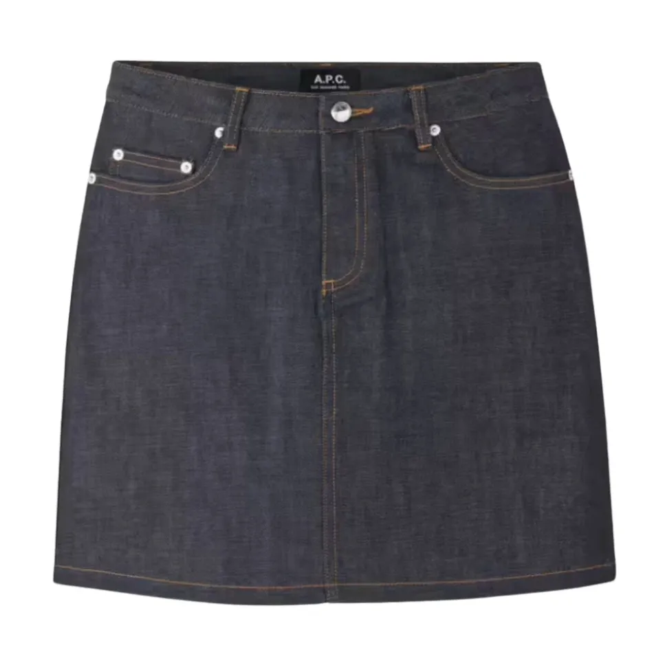 Oplev A.P.C. Denim Mini Nederdelen, en smart tilføjelse til din garderobe med sin indigo kant og højtaljede design, perfekt til afslappede udflugter eller en aften i byen. Produkt detaljer: Indigo | Blå | 100% Bomuld | Lynlås og knaplukning | Meget kort snit | Let udvidet | Karamelfarvede sømme | Dimensioner og pasform: Passer normal i størrelsen | Sammensætning og pleje: 100% Bomuld | Maskinvask ved 30°C med vrangen ud. Må ikke tørretumbles. Jeans kan synes krympet efter vask, men vil genvinde formen, når de bæres.