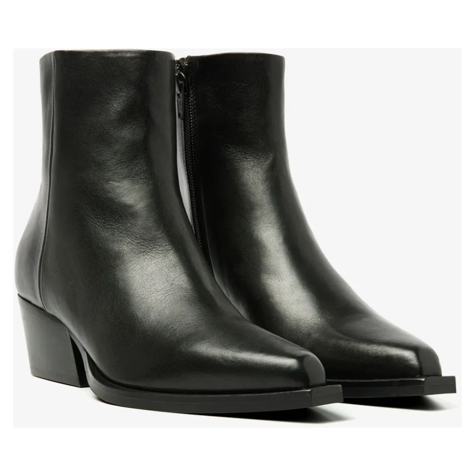 Key features Skrå blokhæl Lige tåkappe Tidløs sort læder Dekorativ søm på siden Funktionel lynlås på indersiden Foring i læder Lavet af læder i høj kvalitet Håndlavet i PortugalDo Cassidy sorte ankelstøvlerLeder du efter en stilfuld, elegant og feminin ankelstøvle? Så behøver du ikke lede længere, Do Cassidy er dit perfekte match! Disse ankelstøvler er lavet af smidigt læder, der giver et hårdt look. Den skrånende blokhæl og den lige tå er et subtilt nik til western-trenden. Kombiner dette med den stilfulde pyntesøm på siden og du har en ankelstøvle, du ikke kan ignorere. Tidløs og trendy!Sådan styler du Do Cassidy ankelstøvlerTakket være sin alsidighed kan du sætte Do Cassidy sammen med hvad som helst. Vores personlige favorit? Style ankelstøvlerne med et farvestrålende jumpsuit eller bukser. Denne kontrast vil få dine ankelstøvler til at skille sig ud. Garanteret succes! Størrelse Skaftets bredde* Skaftets højde 36 25,7 cm 12,7 cm 37 26 cm 13 cm 38 26,3 cm 13,3 cm 39 26,6 cm 13,6 cm 40 26,9 cm 13,9 cm 41 27,2 cm 14,2 cm 42 27,5 cm 14,5 cm *Målt på toppen af skaftet.