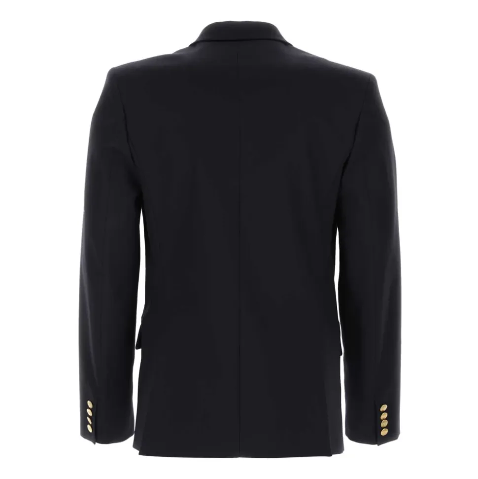 Valentino Garavani dobbeltknappet bomuldsjakke kombinerer en slank, skræddersyet silhuet med signatur VLogo juvelbesatte knapper for raffineret formelt tøj. Vigtigste egenskaber: Navy blå | Bomuld | VLogo juvelbesat knaplukning | To klaplommer foran | En brystlomme | Foret | Dobbeltknappet | Spidse revers | VLogo juvelbesatte knapper | Dimensioner og pasform: Længde: 73,5 cm (italiensk størrelse 46) | Slank pasform | Sammensætning og pleje: 100% bomuld (ydre) | 100% Cupro (foring)