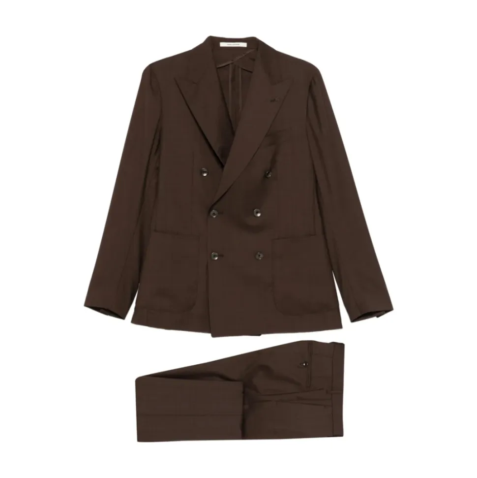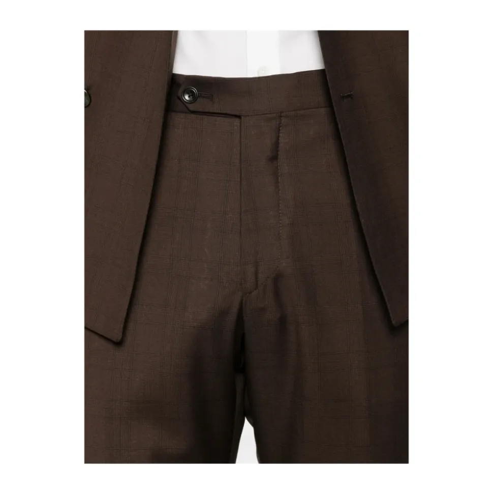Tagliatore dobbeltradet ulddragt kombinerer raffineret skrædderkunst med et klassisk ternet mønster. Dragten er designet til formelle og smarte-casual lejligheder og har en dobbeltradet jakke med hakkede revers og praktiske klaplommer. Vigtigste egenskaber: Brun | Jomfruuld | Knaplukning | Klaplommer | Foret | Ternet mønster | Dobbeltradet | Hakkede revers | Dimensioner og pasform: Slim fit | Sammensætning og pleje: 100% jomfruuld (jakke og bukser) | Jakke foring: 100% Cupro | Bukseforing: 100% Bomuld