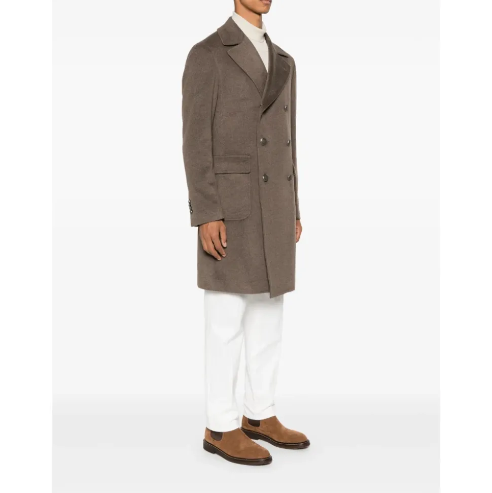 Tagliatore Double-Breasted Frakke i beige er en sofistikeret tilføjelse til din garderobe, perfekt til både formelle og afslappede omgivelser. Dens fremtrædende funktion er den klassiske dobbeltradede lukning, der tilbyder tidløs elegance. Produkt detaljer: Beige | cashmere | double-breasted lukning | klassiske revers | filt finish | dekorativ nåledetalje | Dimensioner og pasform: regular fit | Sammensætning og pleje: cashmere | Renseri anbefales.