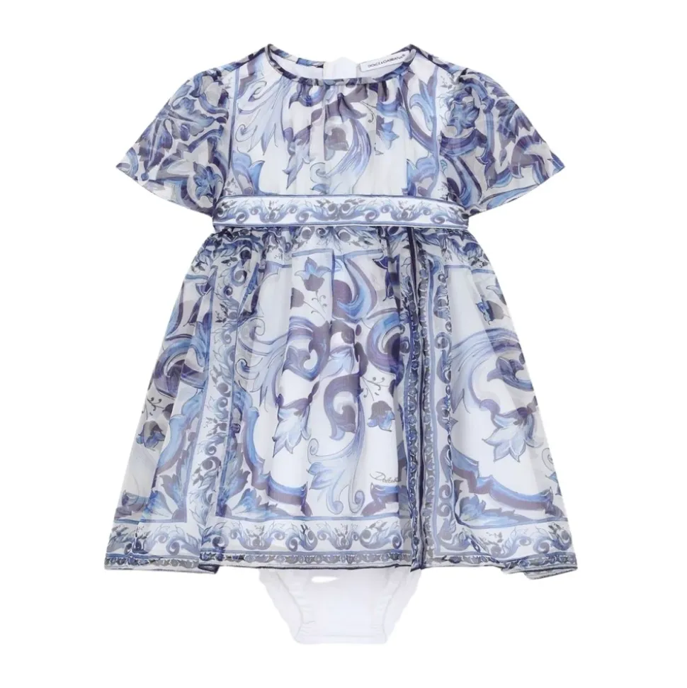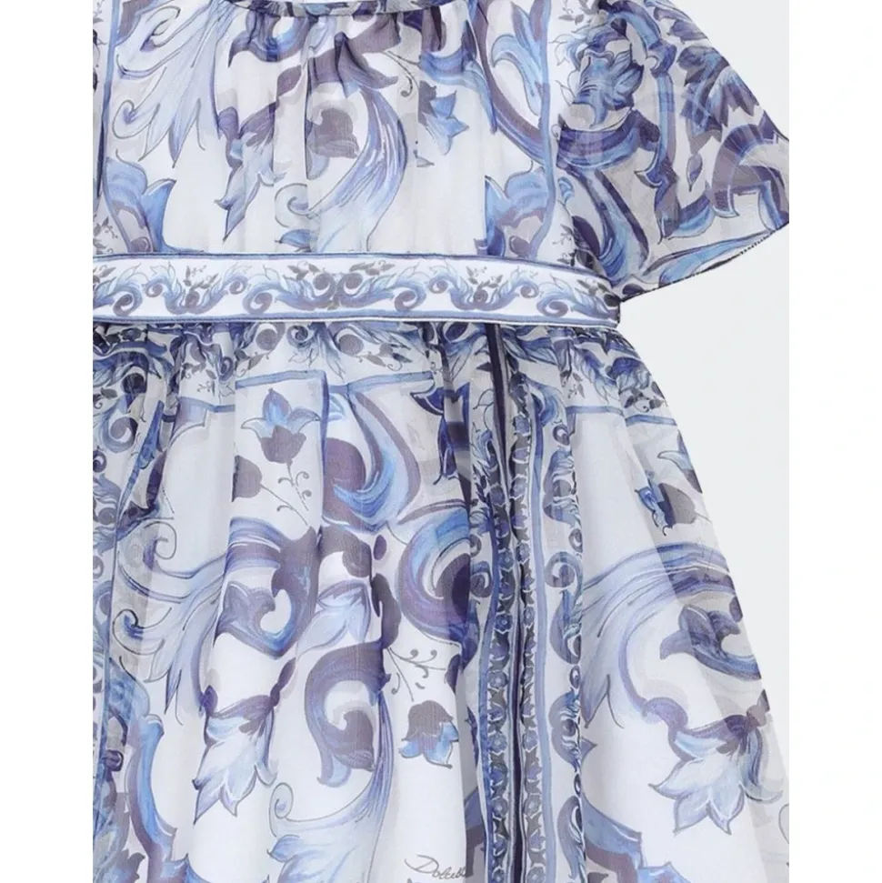 Dolce & Gabbana kjole med rund halsudskæring og et all-over maiolica-print. Let og klar til sommeren med korte flæseærmer, bælte i taljen og lynlåslukning bagpå. Vigtigste egenskaber: Flerfarvet | Hvid | Bomuld | Let | Velegnet til sommerbrug | Lynlåslukning bagpå | Taljebælte | Inkluderer matchende culotte med elastisk talje | Rund halsudskæring | Korte flæseærmer | All-over maiolica-print | Bælte i taljen | Sammensætning og pleje: 100% bomuld | Maskinvask ved 30°C; må ikke stryges; må ikke vaskes med lyse farver; må ikke bleges.