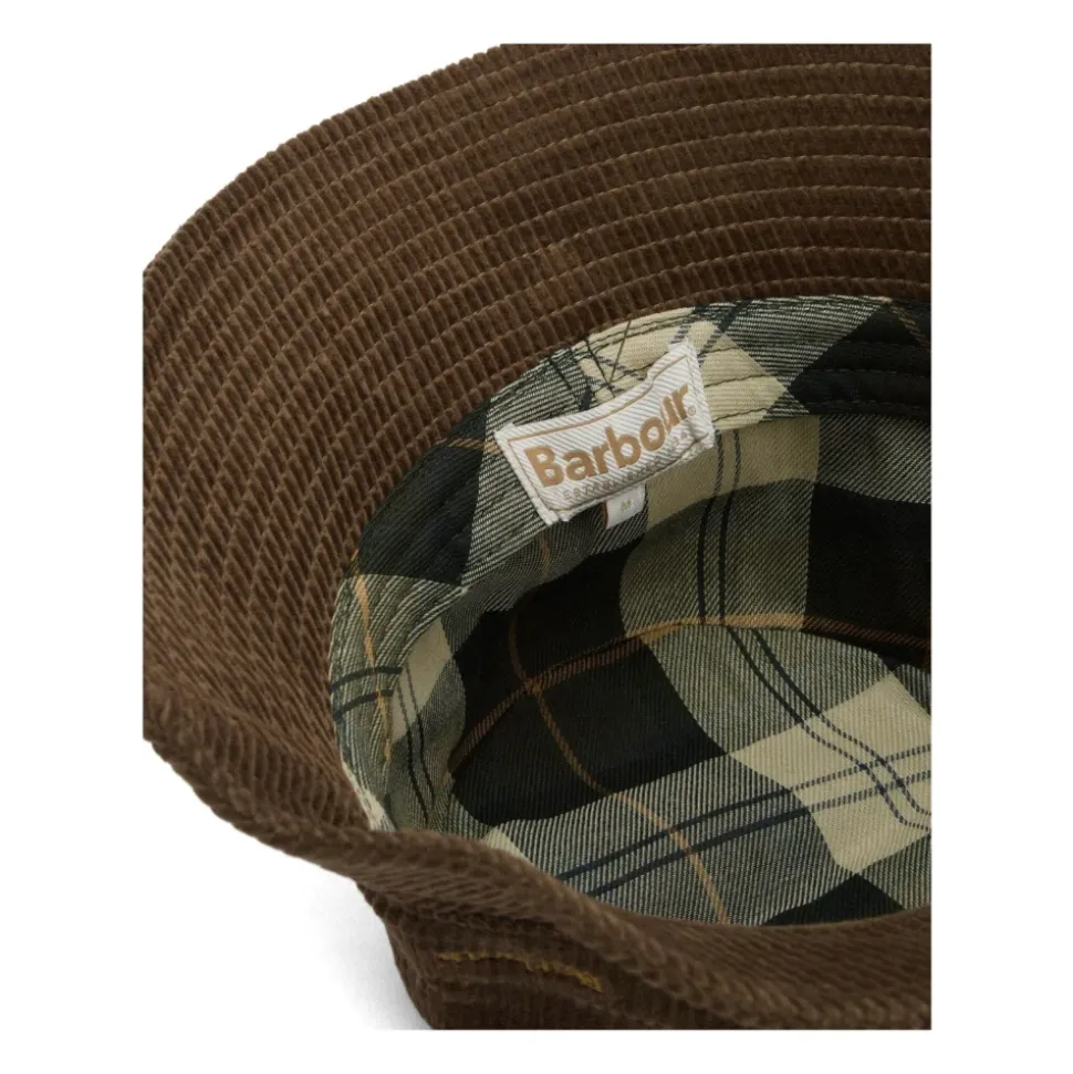 Barbour Ebberston Cord Bucket Hat kombinerer klassisk fløjl med brandets signatur-tartanforing for en stilfuld bucket hat til hverdagsbrug. Dens tonale logo-broderi og bløde fløjlsfinish gør den ideel til afslappet lag-på-lag og sæsonbetonet outfits. Vigtige egenskaber: Militærbrun | Bomuld | Fuldt foret | Bucket hat silhuet | Fløjlstekstur | Grøn tartanforing | Tonalt broderet logo | Dimensioner & pasform: Fås i størrelserne S, M, L | Sammensætning & pleje: Yderstof: 100% bomuld | Foring: 100% bomuld | Må ikke vaskes.